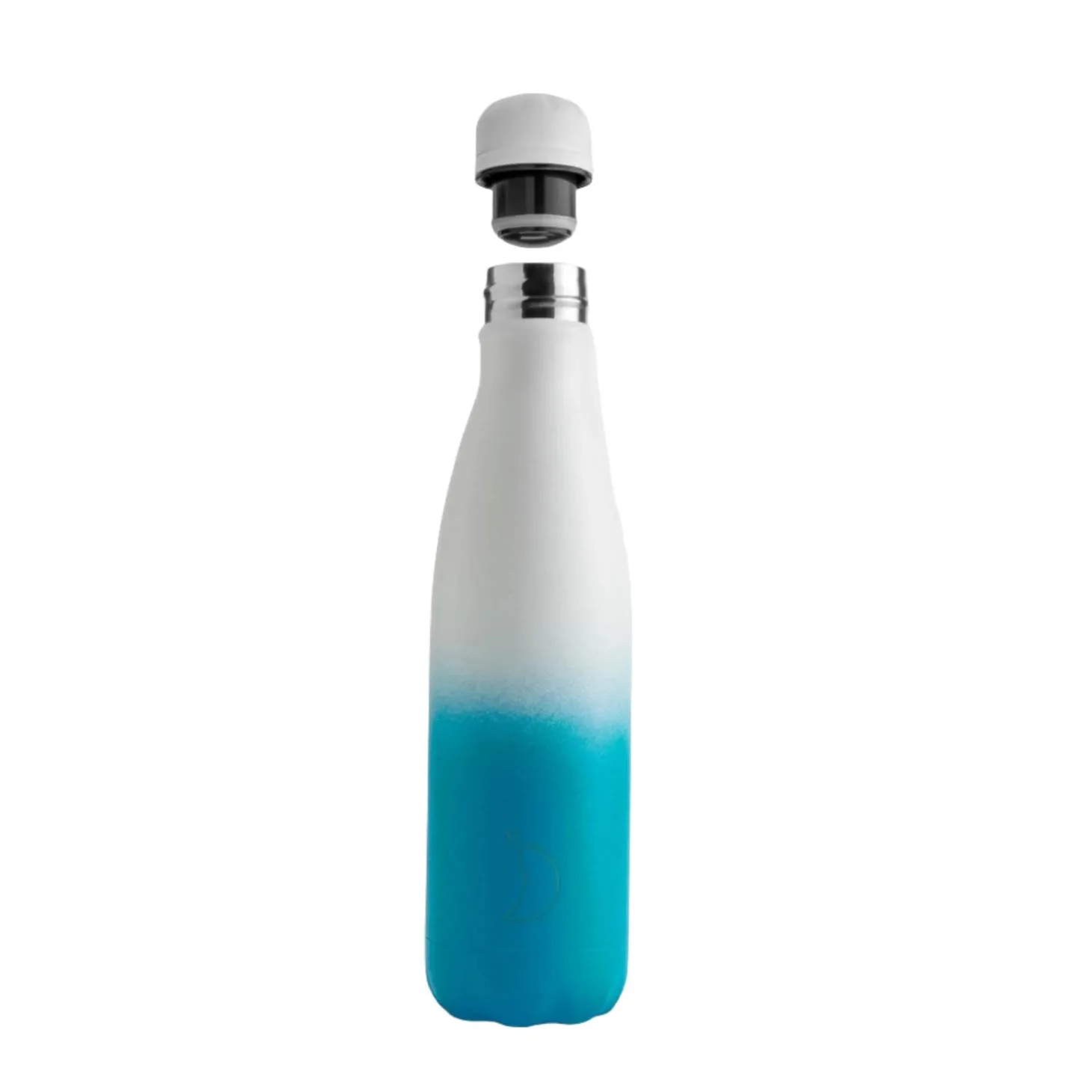 The 500ml Drinks Bottle in Gradient Arctic Evening by the highly acclaimed Chilly’s is ideal for maintaining a healthy lifestyle. Made from durable, high-grade 18/8 stainless steel, the bottle features an airtight screw top lid with a silicone o-ring to help prevent leaks and preserve the flavour and freshness of your chosen drink without tainting.