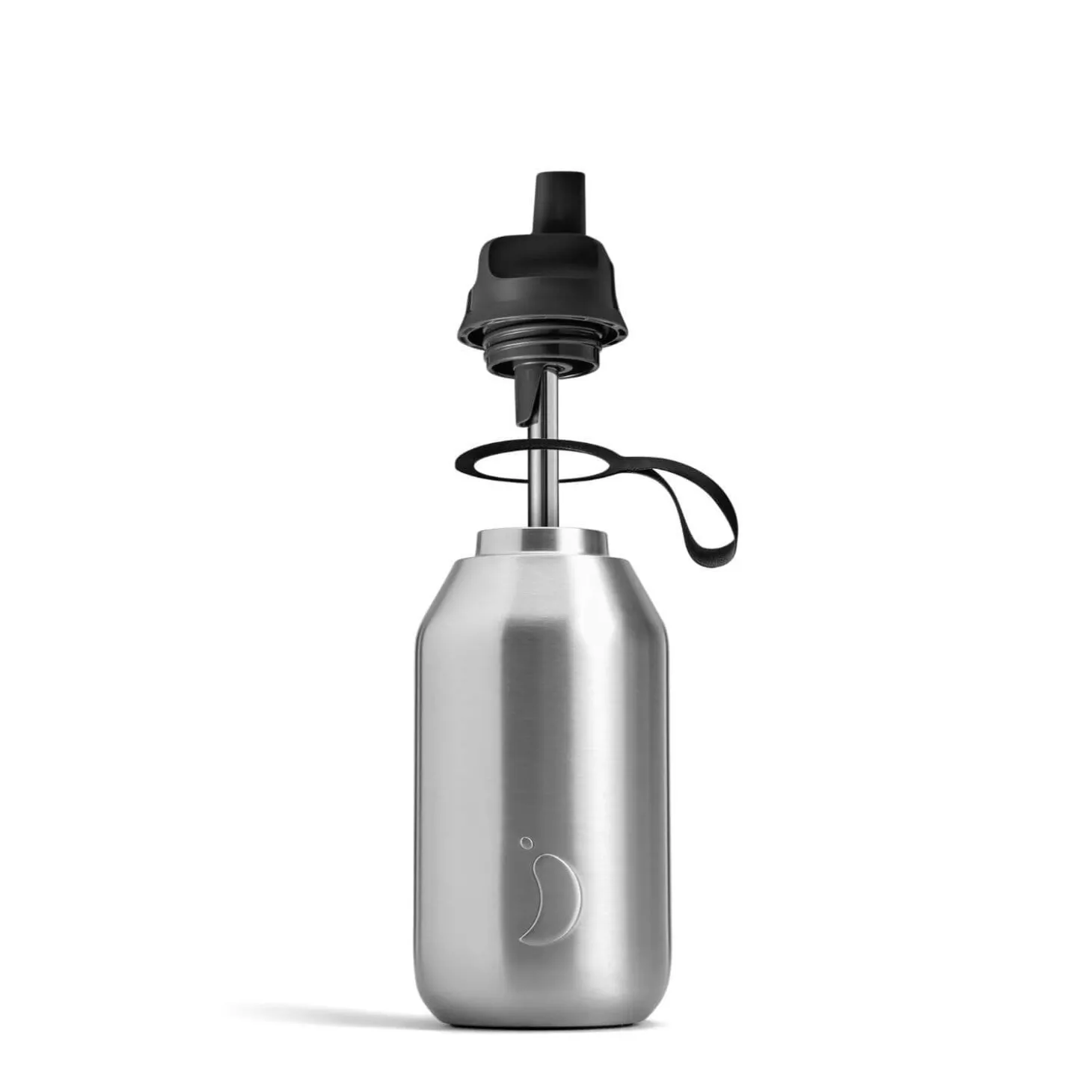 Chilly’s presents the Series 2 350ml Flip Bottle in Stainless Steel, ideal for those with active lifestyles. The Series 2 bottles combine the successful qualities of the original series to evolve the design into something transformative. The Flip design incorporates a stainless steel telescopic straw with a cleaning brush and an easy flip sports lid with a woven nylon carry loop. Each water bottle in the Series 2 collection has a double-walled design that keeps liquids cold for up to 24 hours. Choose from a variety of on-trend designs that perfectly complement other items in the range.