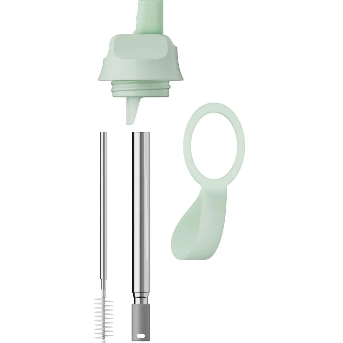 - Contains a stainless steel straw, cleaning brush and a flip top lid