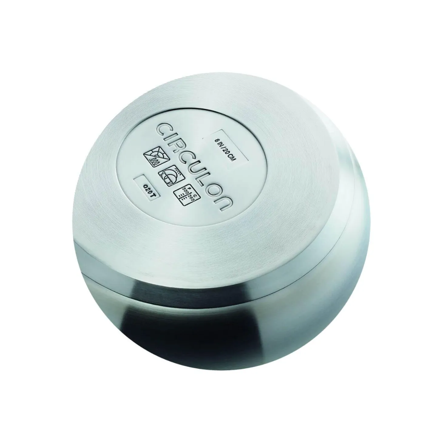 Circulon presents their C Series Steelshield Non-stick Chef Pan with Lid, made of strong durable tri-ply stainless steel with the trademarked Circulon non-stick grooves, makes this pan suitable for use with metal utensils and prevent any scratching of the surfaces. This robust Chefs Pan has steel peaks that protect the non-stick grooves, offering excellent heat control whilst you are cooking, the handle of the lid stays cool enabling you to check the contents without worrying about the use of mitts or oven gloves. This Circulon chefs pan is not only strong, practical and efficient it is also attractive to look at with its polished finished and stylishly designed handle on the lid.