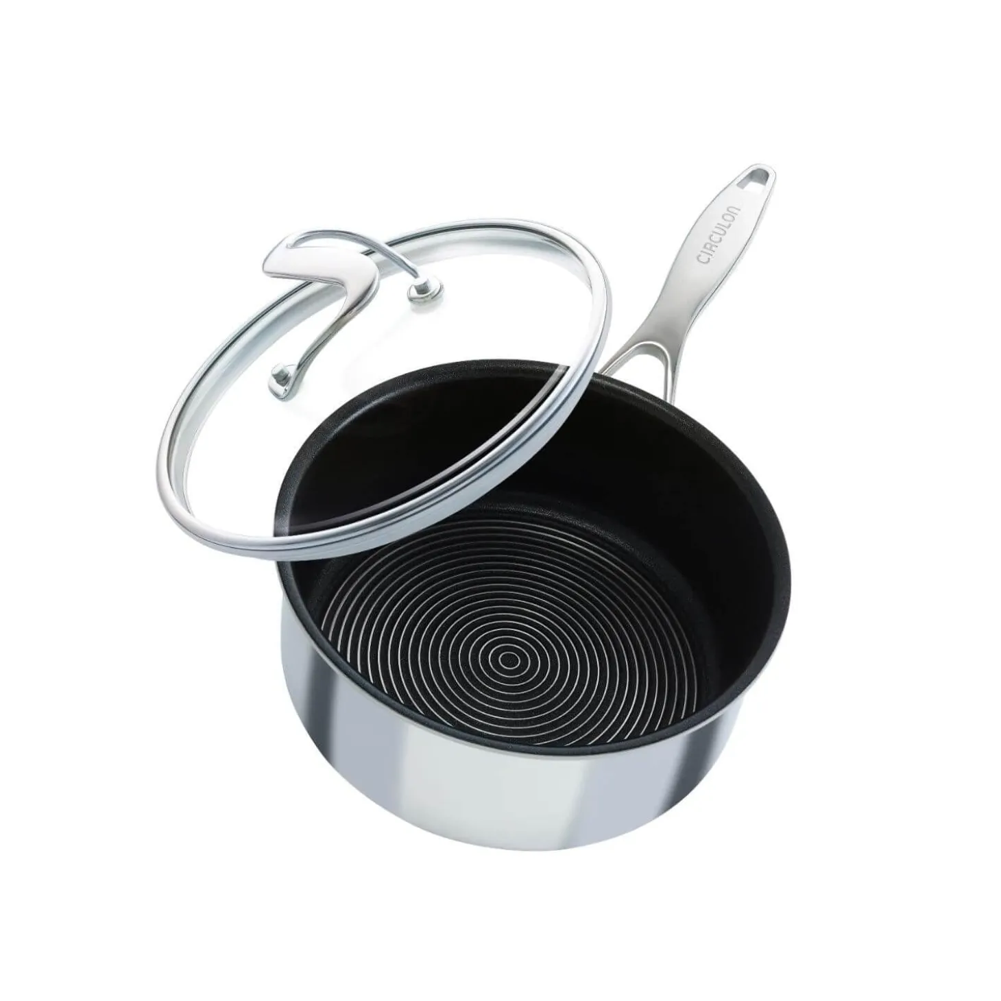 Circulon presents their C Series Steelshield Non-stick 18cm Saucepan with Lid, made of strong durable tri-ply stainless steel with the trademarked Circulon non-stick grooves, makes this pan suitable for use with metal utensils and prevent any scratching of the surfaces. This robust saucepan has steel peaks that protect the non-stick grooves, offering excellent heat control whilst you are cooking, the handle of the lid stays cool enabling you to check the contents without worrying about the use of mitts or oven gloves. This Circulon saucepan is not only strong, practical and efficient it is also attractive to look at with its polished finished and stylishly designed handle on the lid.