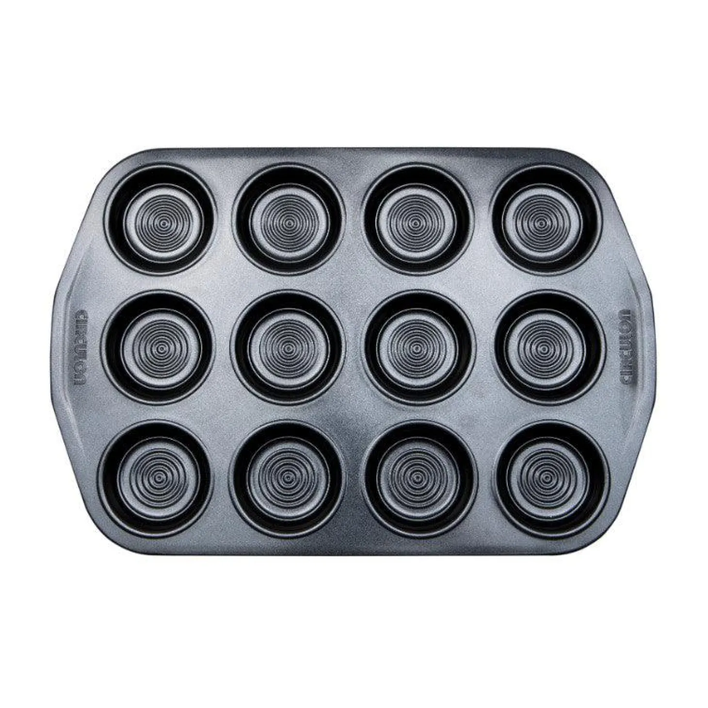 The Circulon Ultimum 12 Cup Non-Stick Bun Tin distributes heat evenly to reduce hot spots and is lined with the patented Circulon Ultra Total ® Hi-Low Food Release System; proven to provide outstanding non-stick performance in the form of unrivalled food release and easy cleaning.