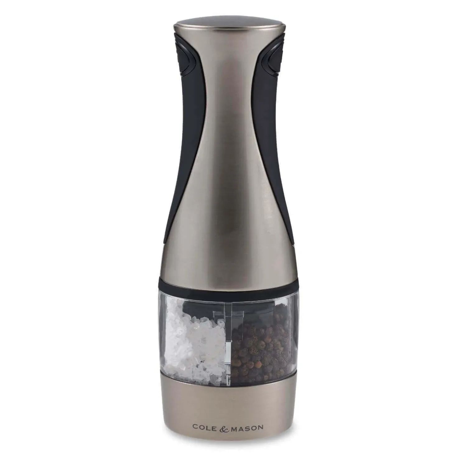 Ideal for use when you are cooking is this Cole & Mason Kew 2 in 1 electronic salt and pepper mill as it can be operated by one hand dispensing either salt or pepper into your pan. The soft-touch buttons are easy to use and the adjustable grind for either the salt or the pepper is to be found on the base of the mill which has three settings allowing you to adjust from fine to coarse, the duo diamond sharp ceramic mechanism is perfect for releasing flavour with every turn. Perfect for all cooks kitchens and a stylish mill to have on your table setting.