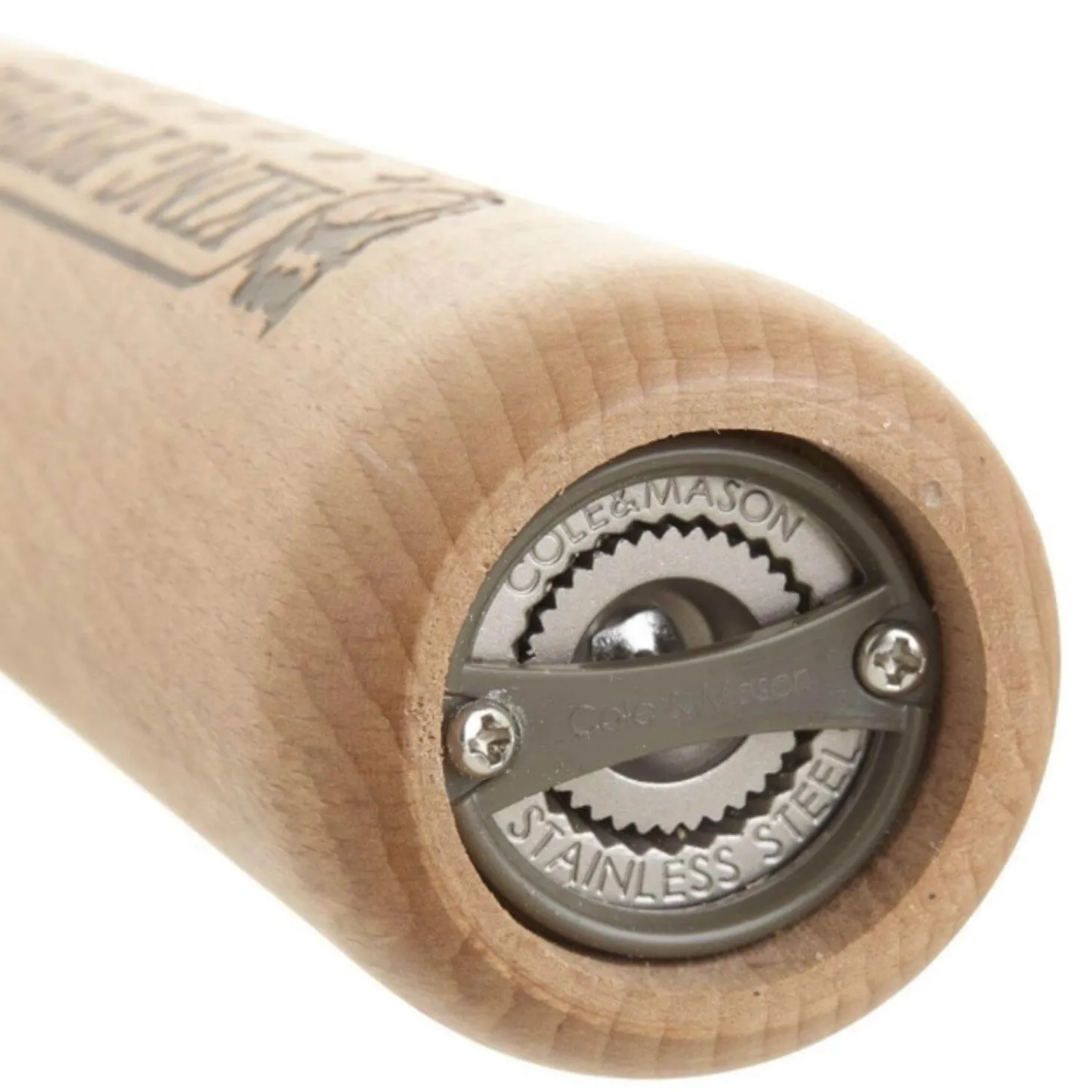 Cole & Mason present the King Pepper Beech Wood Pepper Mill featuring the precision+ carbon steel mechanism on the pepper mill they are known for, making these mills a hardwearing functional addition to your kitchen. This impressive king-sized pepper mill from Cole & Mason is designed in the shape of a baseball bat, making it an ideal conversation piece to impress your guests at special occasions, such as barbecues and alfresco dining.