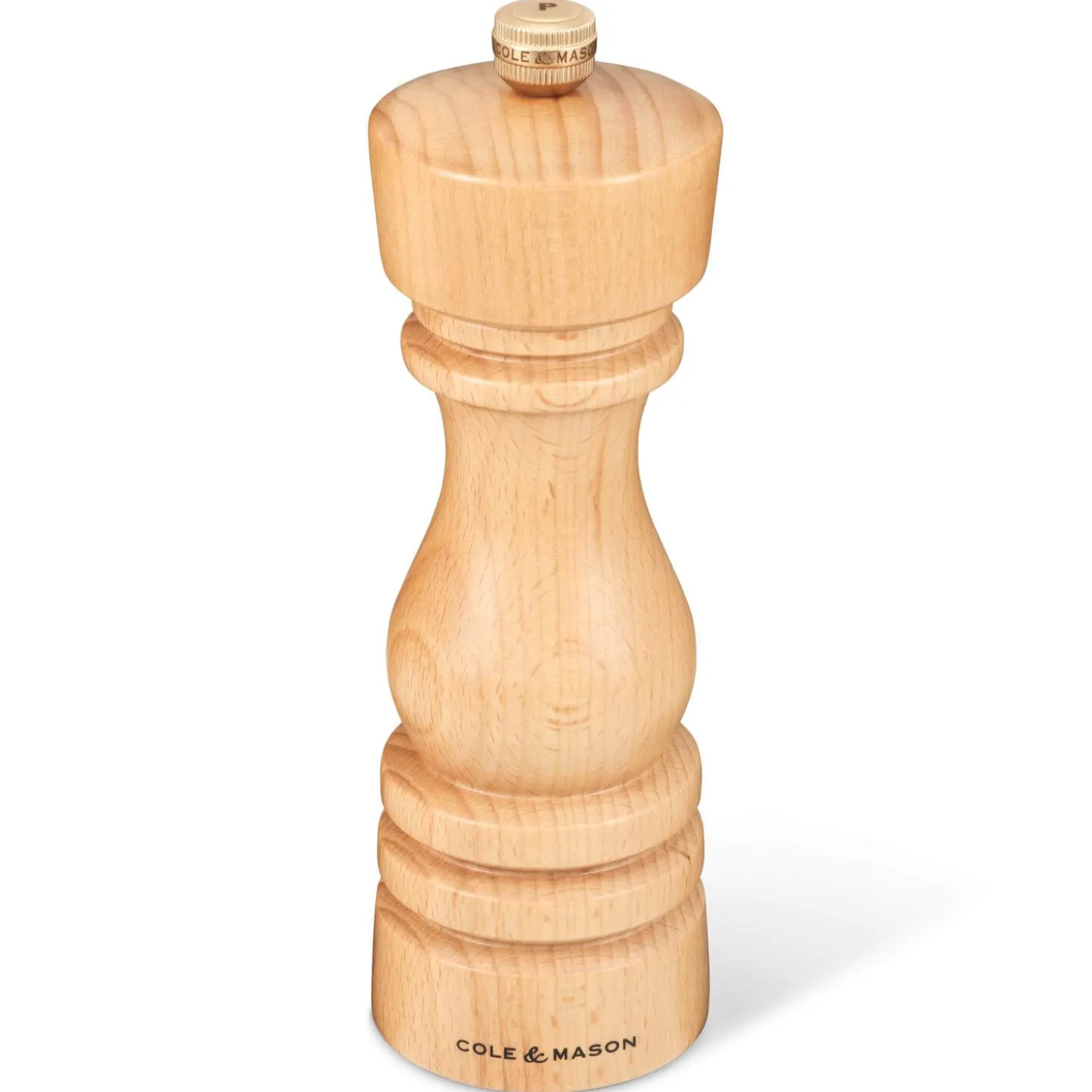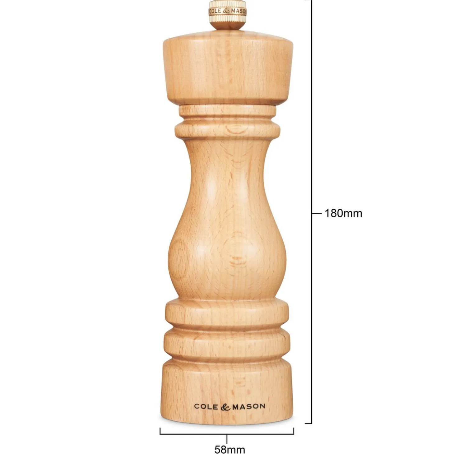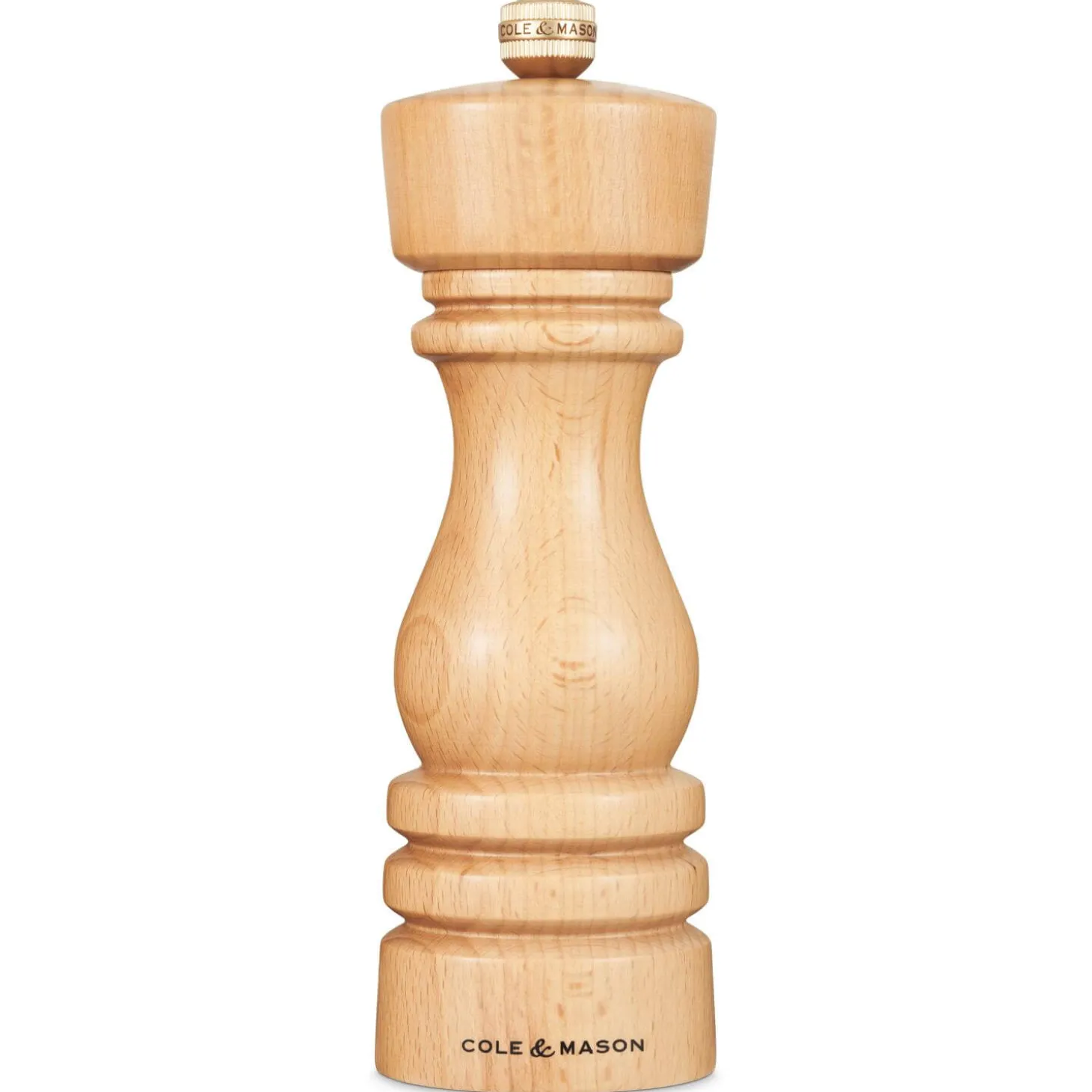 Cole & Mason present the London Beech Wood 18cm Pepper Mill in Natural Beech, featuring the precision+ carbon steel mechanism on the pepper mill they are known for, making these mills a hardwearing functional addition to your kitchen. Traditional design that is ideal for kitchen countertops, dining tables and alfresco dining.