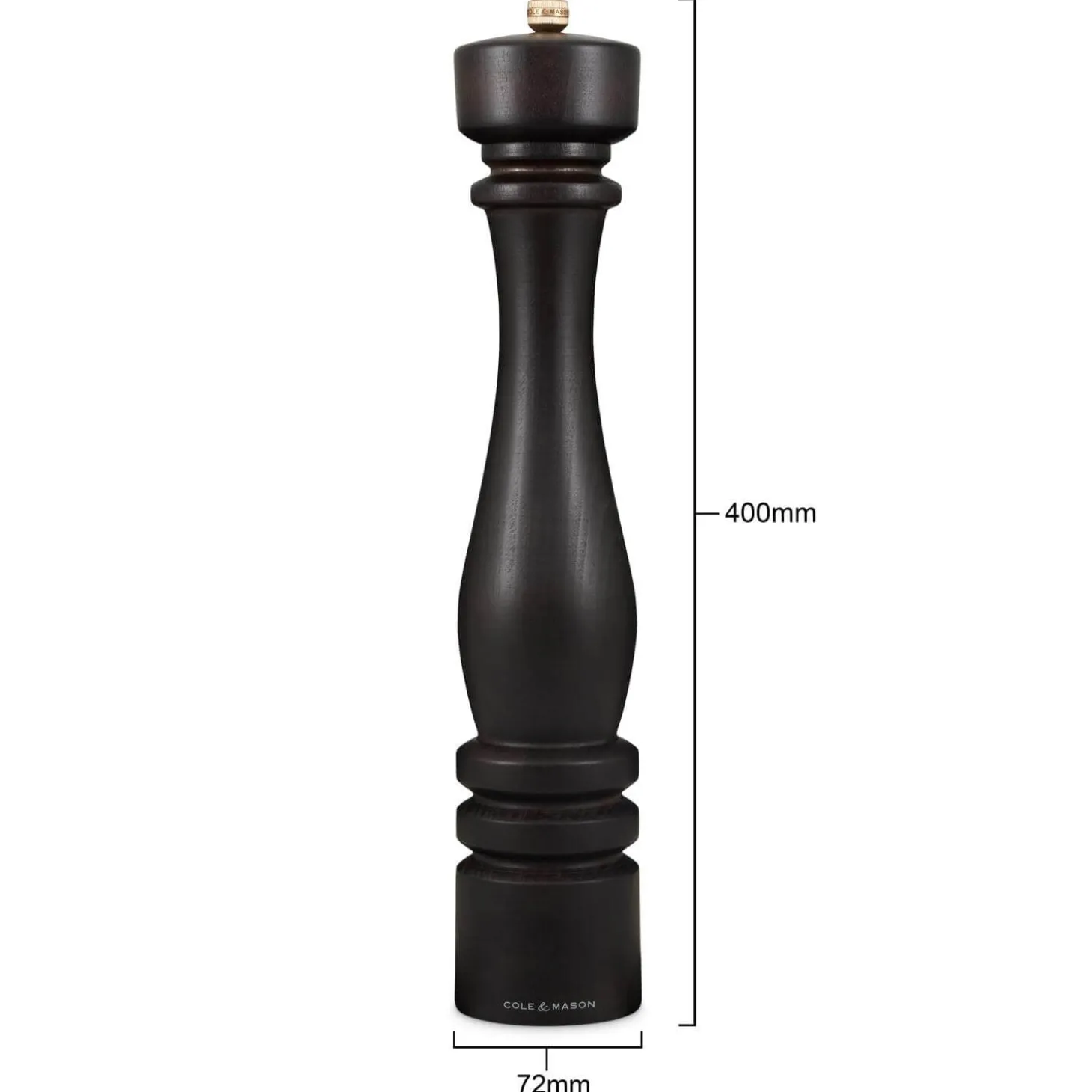 Cole & Mason present the London Large Beech Wood 40cm Pepper Mill in Dark Chocolate, featuring the precision+ carbon steel mechanism on the pepper mill they are known for, making these mills a hardwearing functional addition to your kitchen. Traditional design that is ideal for kitchen countertops, dining tables and alfresco dining.