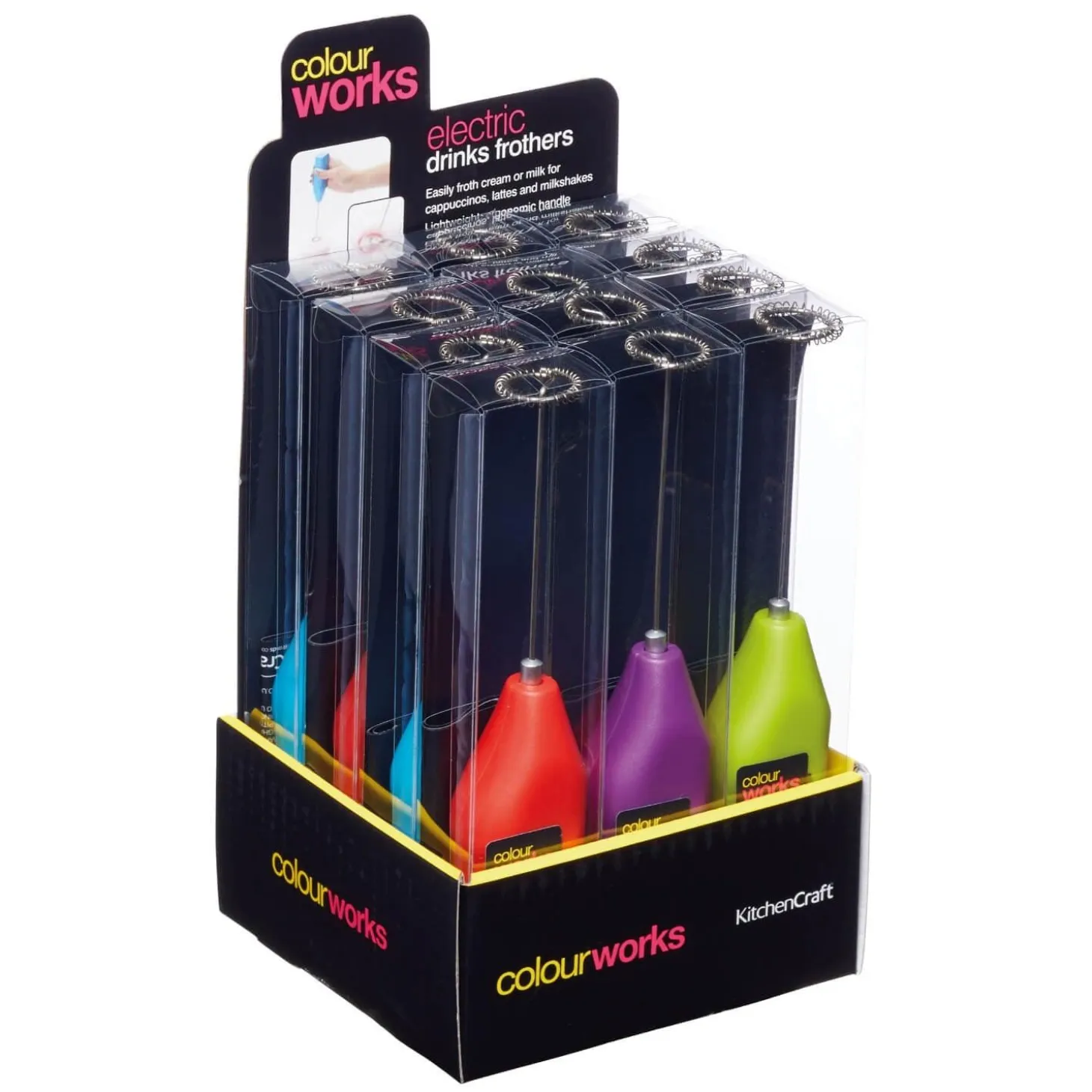 These lightweight colourful electric drink frothers from Colourworks are perfect for frothing cream or milk for cappuccinos, lattes & milkshakes. Each frother has an ergonomic handle for an easy but firm grip whilst in use and a high-quality stainless steel rod and coil to stay in place and froth without causing spills or mess. Other complimenting items are also available in this series which enables you to build your range of kitchen utensils.