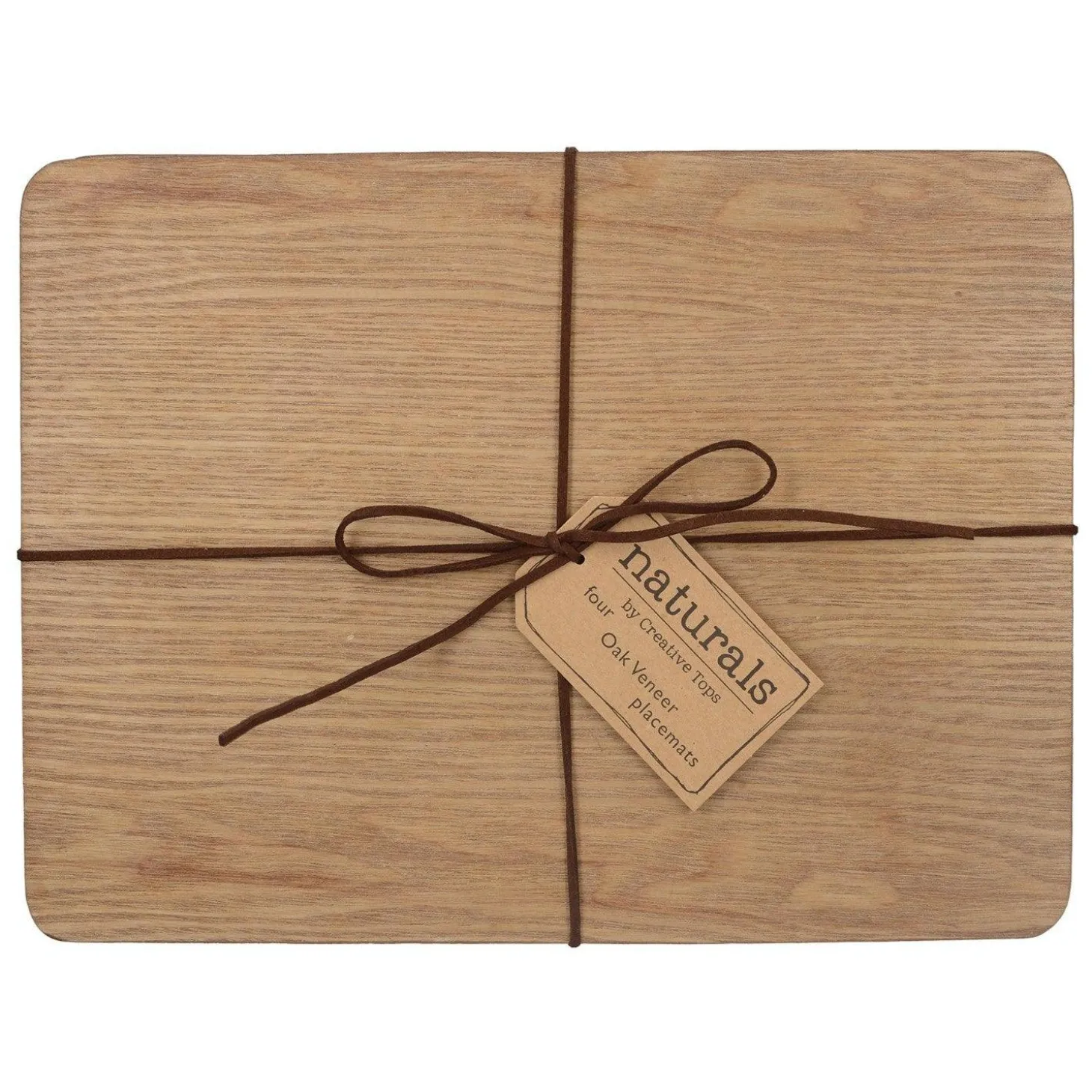 Add a touch of nature to your dinner table with this set of 4 Naturals Oak wood placemats by Creative Tops. Each placemat features an Oak textured veneer design and embraces a mix of materials with naturally occurring patterns and imperfections, there is also a complementing set of coasters available separately.
