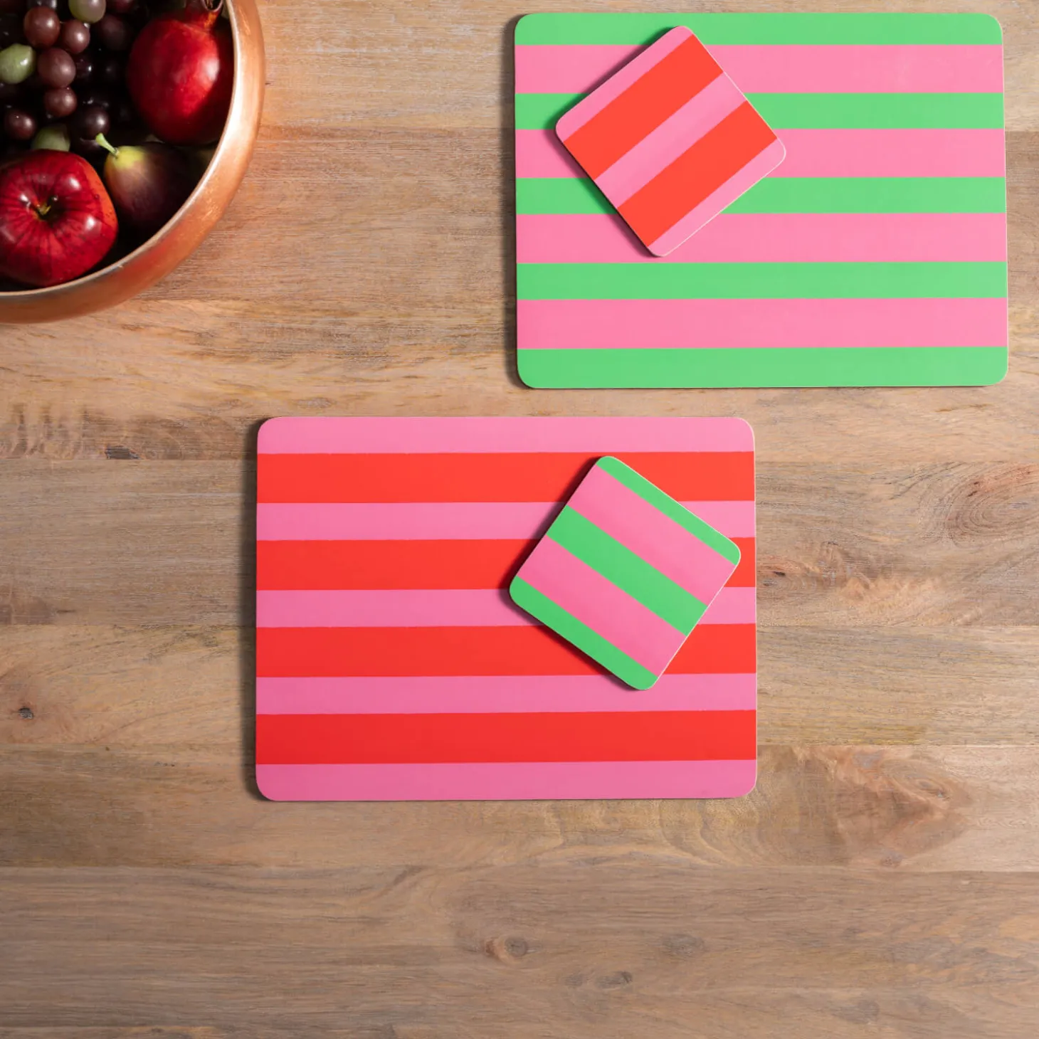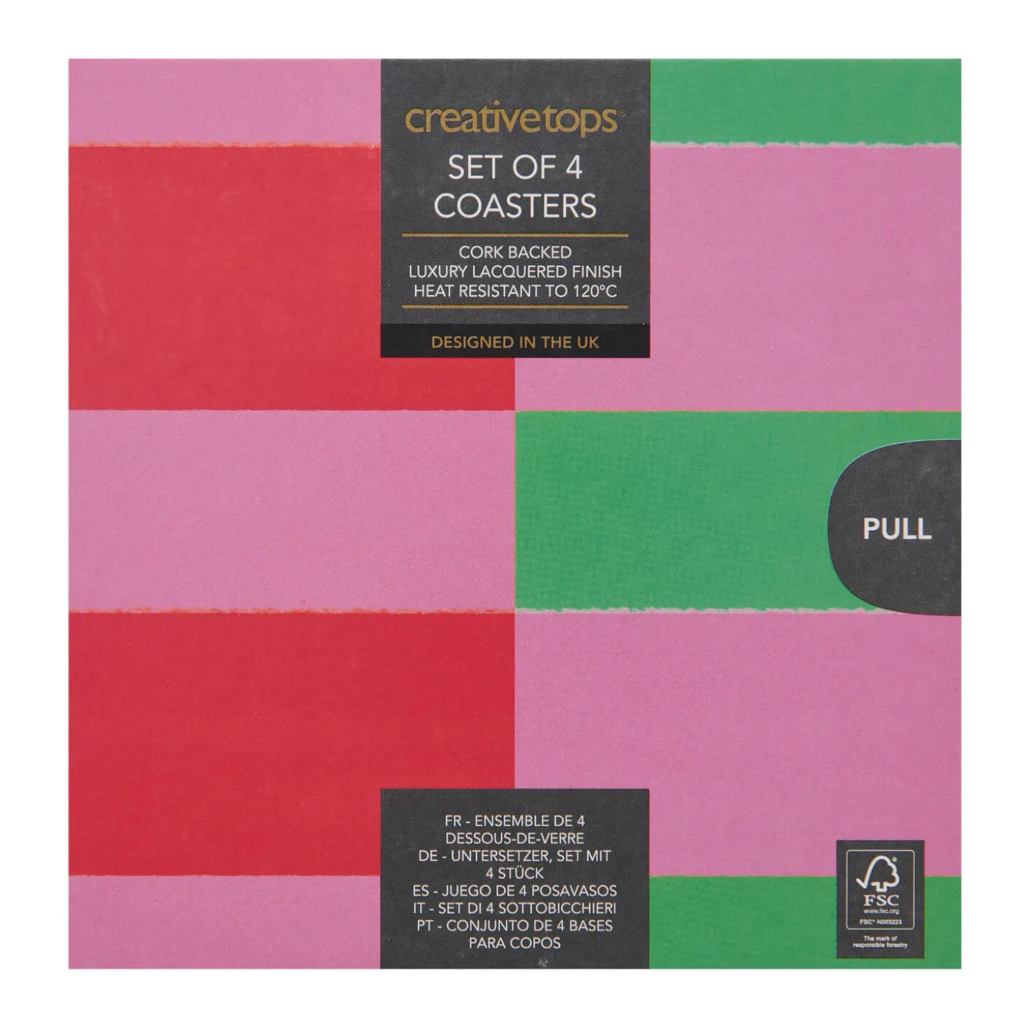 Creative Tops presents the Set of 4 Coasters in Stripes design. Protect your table and tablecloth from spills and heat damage with these stylish coasters, featuring bright and cheerful stripe patterns. Ideal for adding a fun and vibrant touch to your home and table setting.