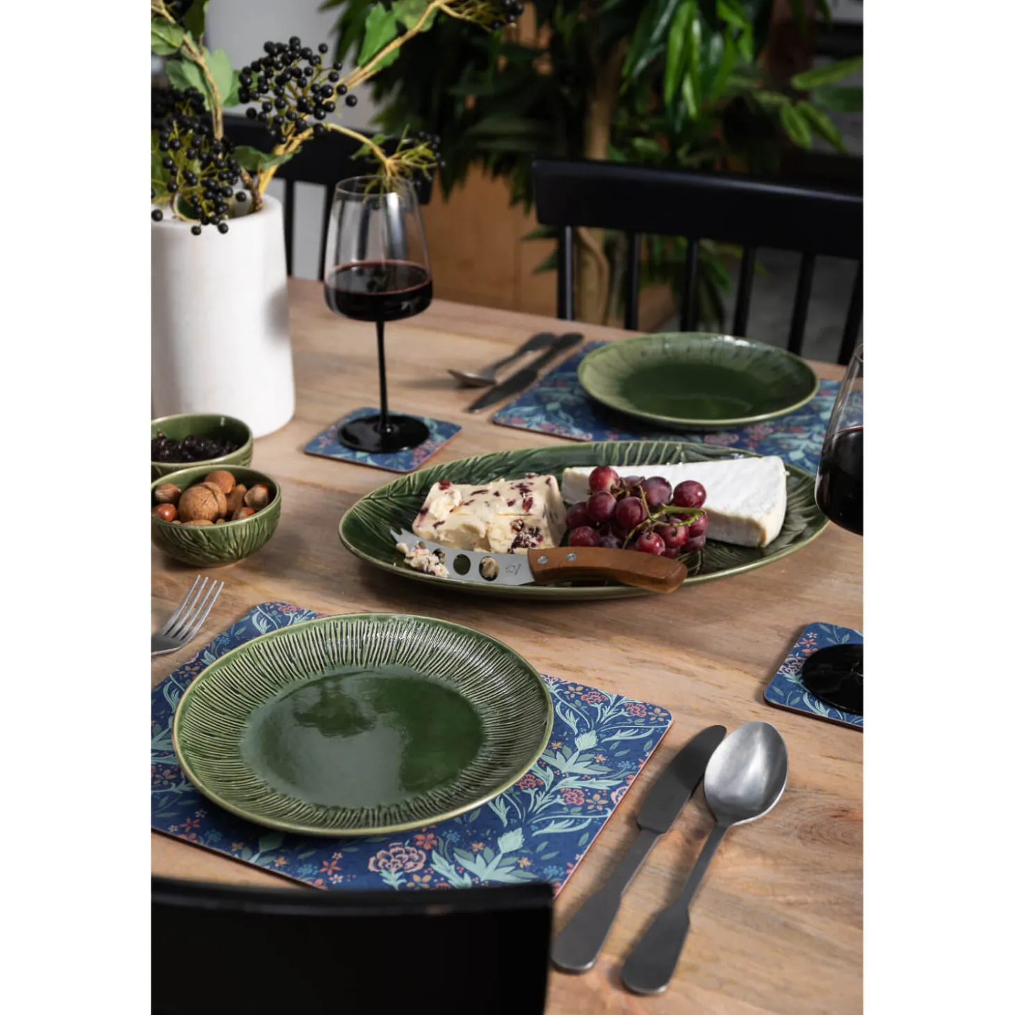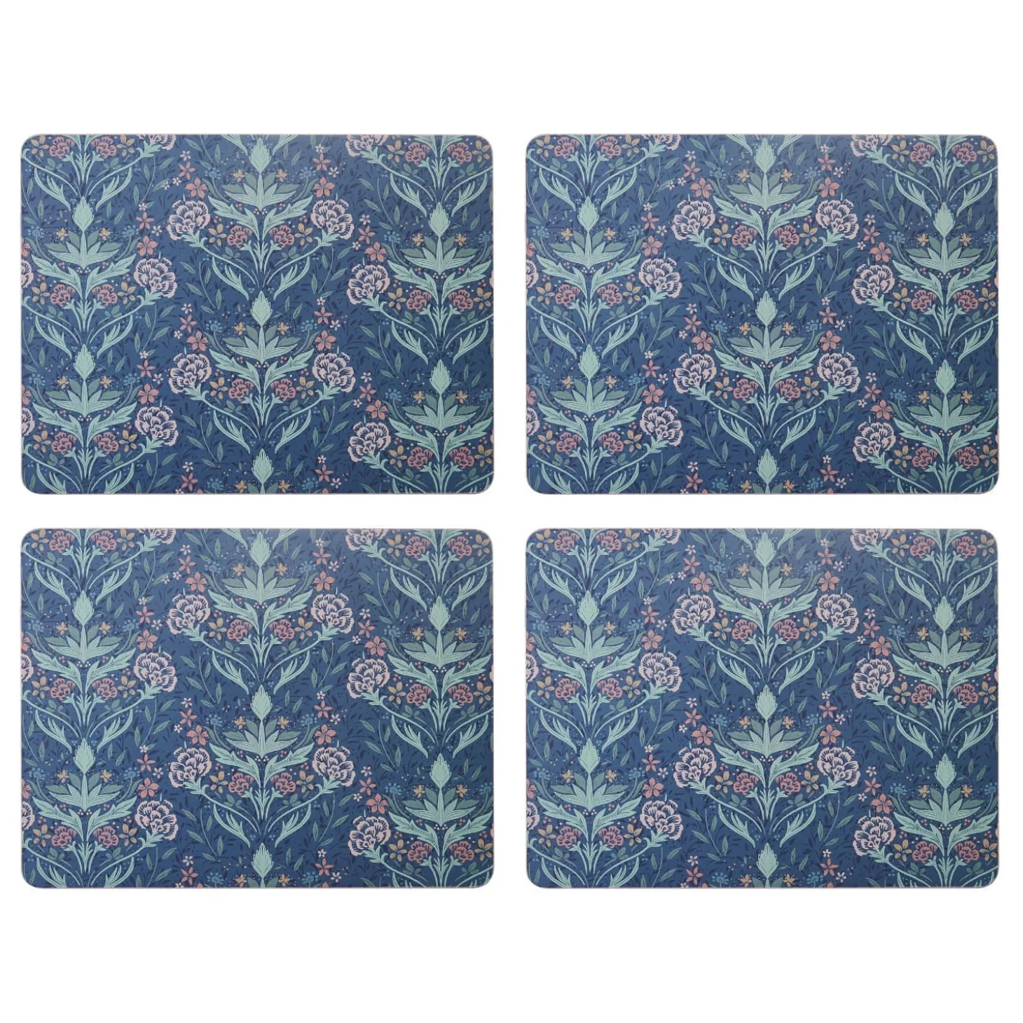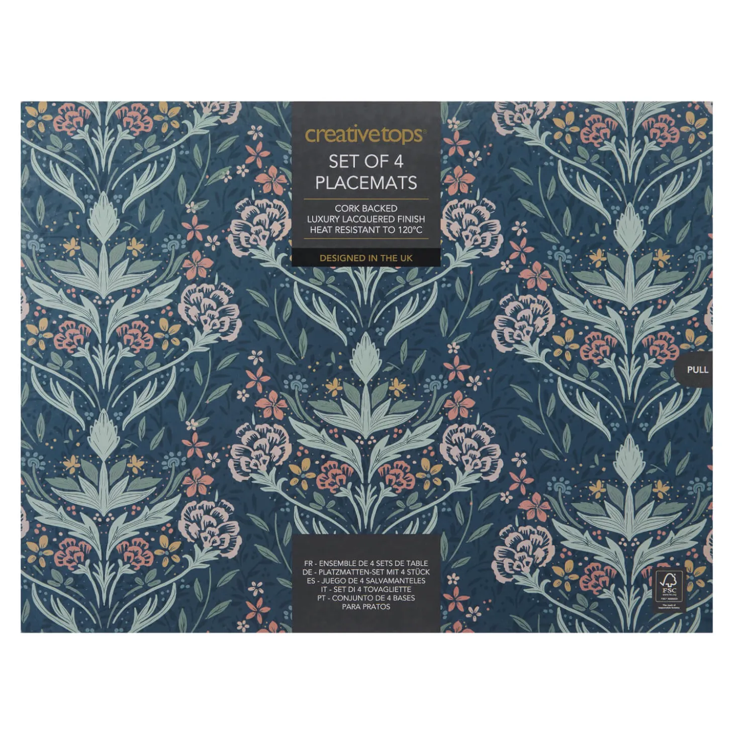 Creative Tops presents the Set of 4 Placemats in Arts Craft design. Protect your table and tablecloth from messy spills and heat damage with these gorgeous placemats, featuring an intricate floral pattern of stylised flowers, leaves and vines in soft pastel colours against a deep blue background. Perfect for creating an elegant and timeless touch to your table setting.