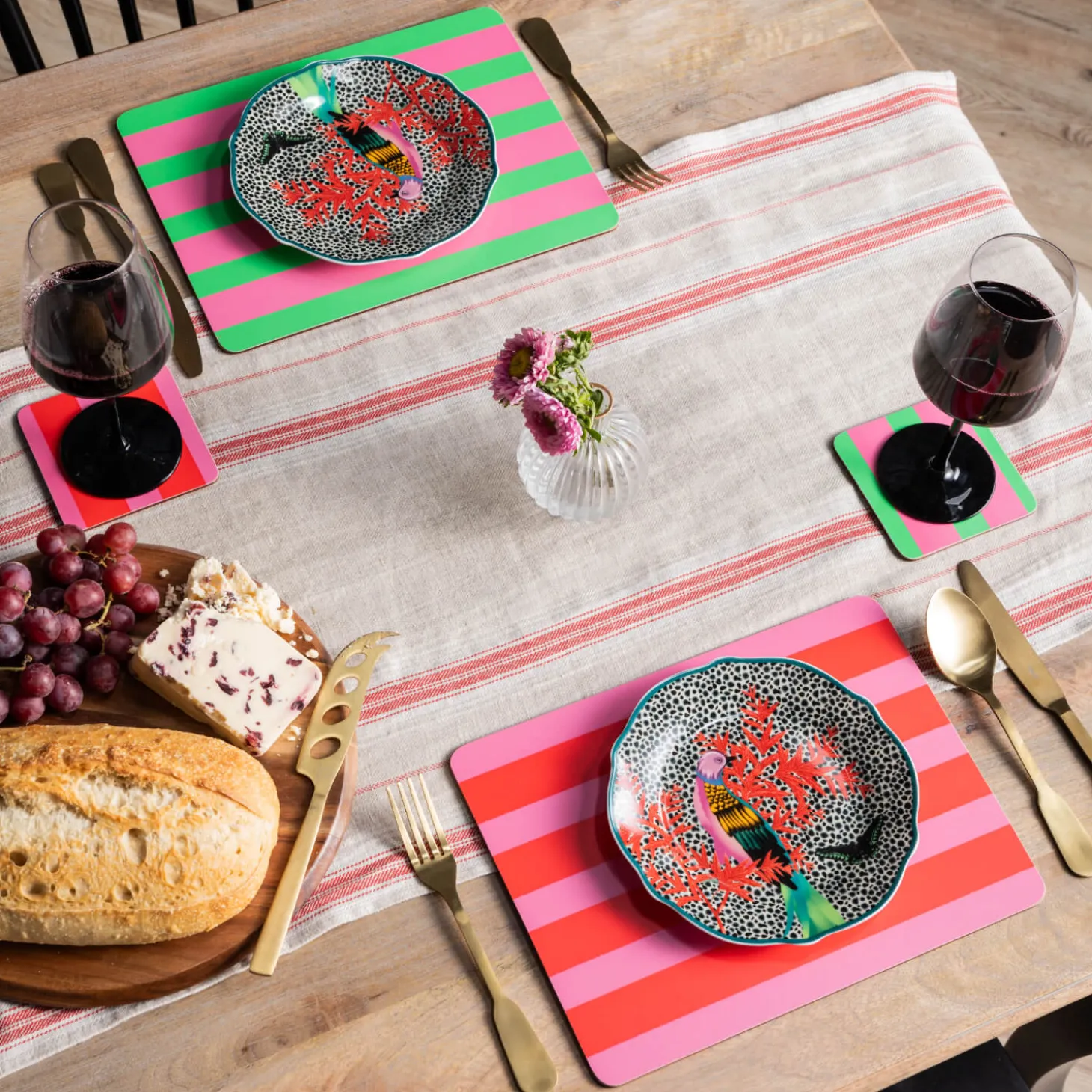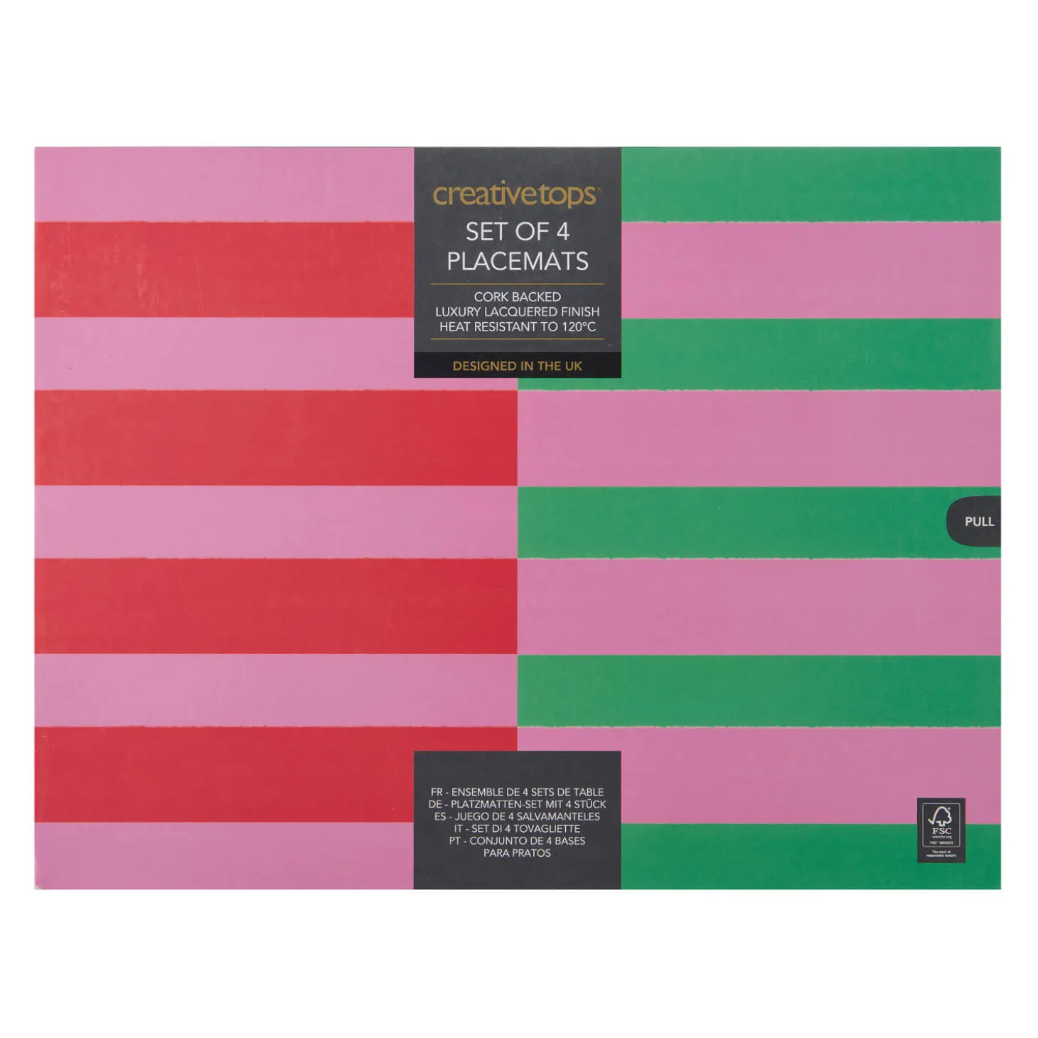 Creative Tops presents the Set of 4 Placemats in Stripes design. Protect your table and tablecloth from spills and heat damage with these stylish placemats, featuring bright and cheerful stripe patterns. Ideal for adding a fun and vibrant touch to your table setting.