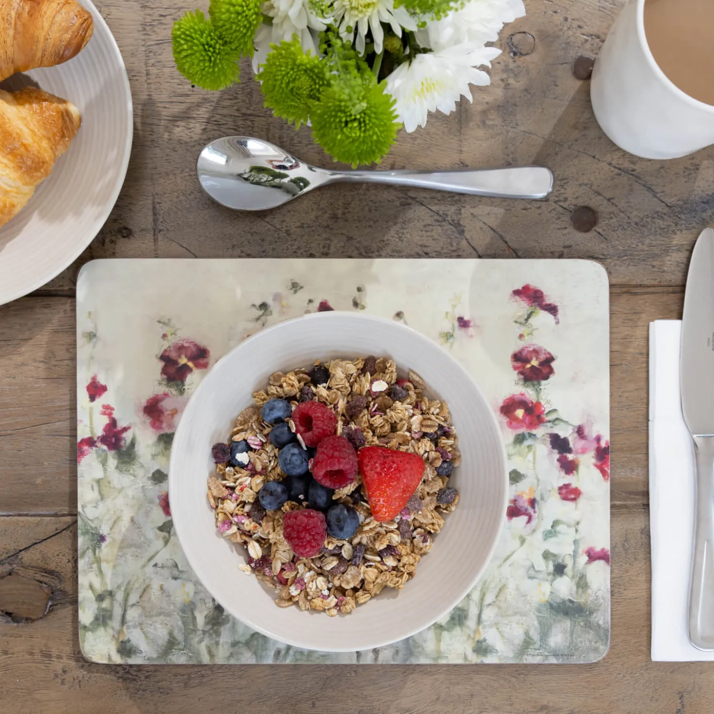 Creative Tops presents the Set of 6 Placemats in Wild Poppies design. Protect your table and tablecloth from messy spills and heat damage with these pretty placemats, featuring a delicate floral pattern of wild poppy blooms against a soft cream background. Perfect for bringing the beauty of wildflowers into your home and table setting.