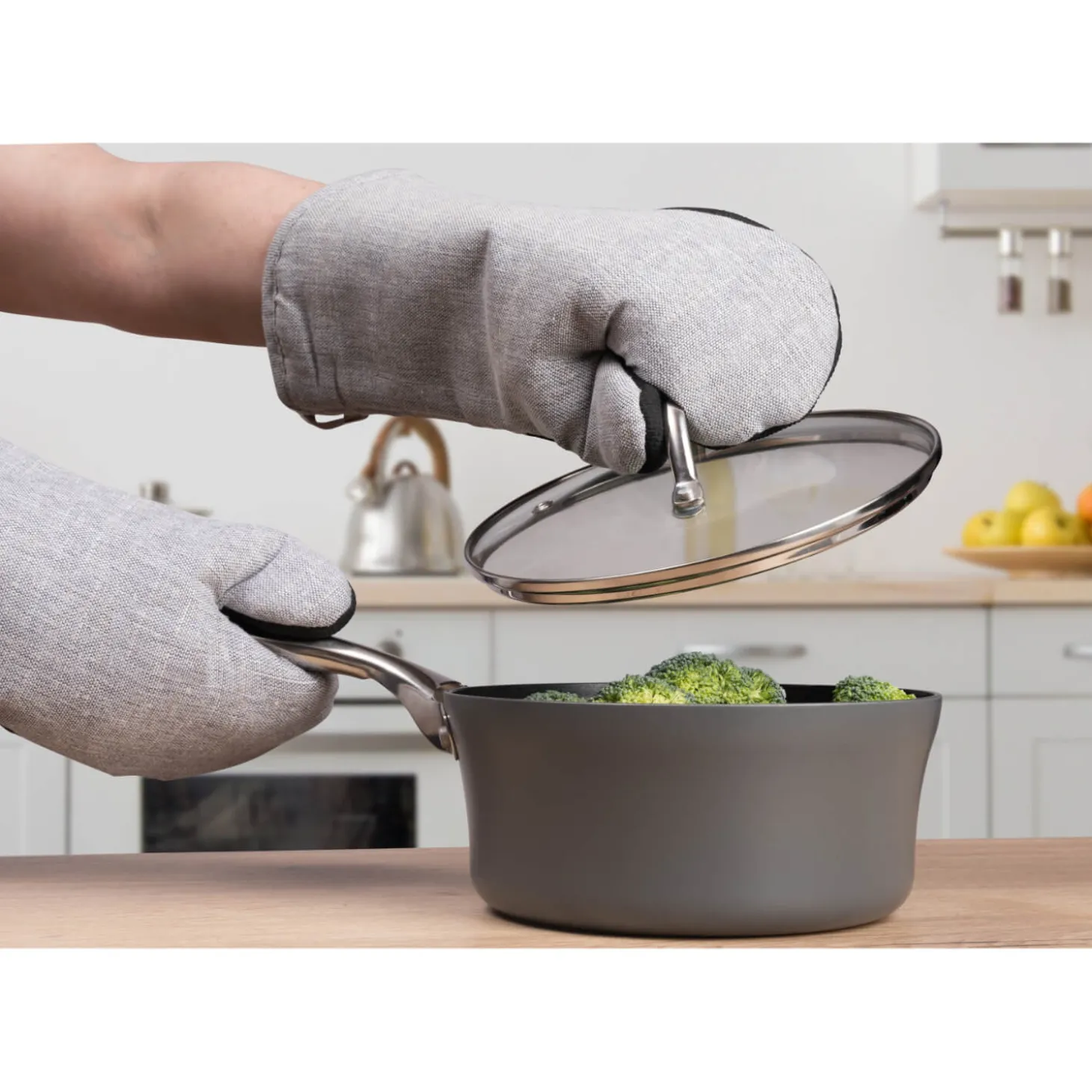 Cuisinart presents the Oven Mitts in Grey, the perfect addition for all cooks kitchens. Made from a cotton polyester blend on the outside and neoprene on the inner sides that allows you to lift hot pans and trays from the oven or hob safely. These oven mitts are ideal for all busy kitchens.