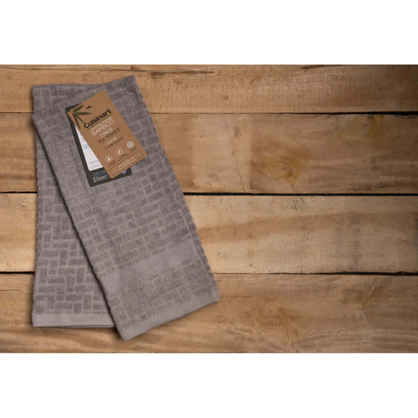 Cuisinart presents the Professional Antimicrobial Bamboo Tea Towels in Light Grey, these tea towels are very soft, highly absorbent and lightweight. Treated with SilverClear, a clear invisible coating, that neutralises the proliferation of bacteria and practically destroys it on contact, makes these tea towels exceptionally hygienic for use in the kitchen, whether drying glasses, crockery or wiping your hands.Â