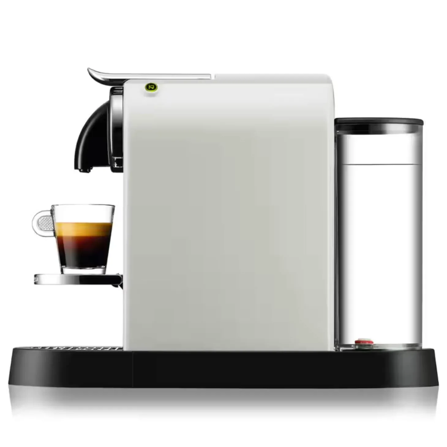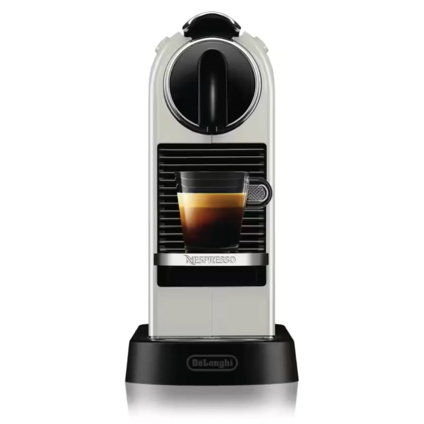 De’Longhi presents the Nespresso CitiZ Espresso Coffee Machine in White, which offers two coffee sizes: espresso for those who prefer a bold and intense flavor, and lungo for a longer and more indulgent coffee experience. With this machine, you can create a variety of coffee beverages, including cappuccinos, lattes, ristrettos, lungos, Americanos, flat whites, cold brews, iced coffees, cortados, doppios, caramel latte macchiatos, latte macchiatos, and espressos, allowing you to be your very own barista at home!