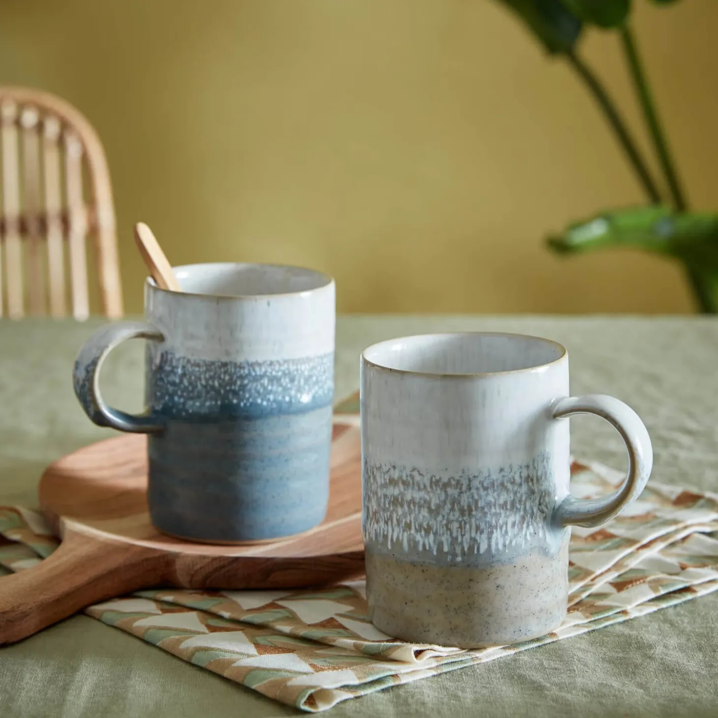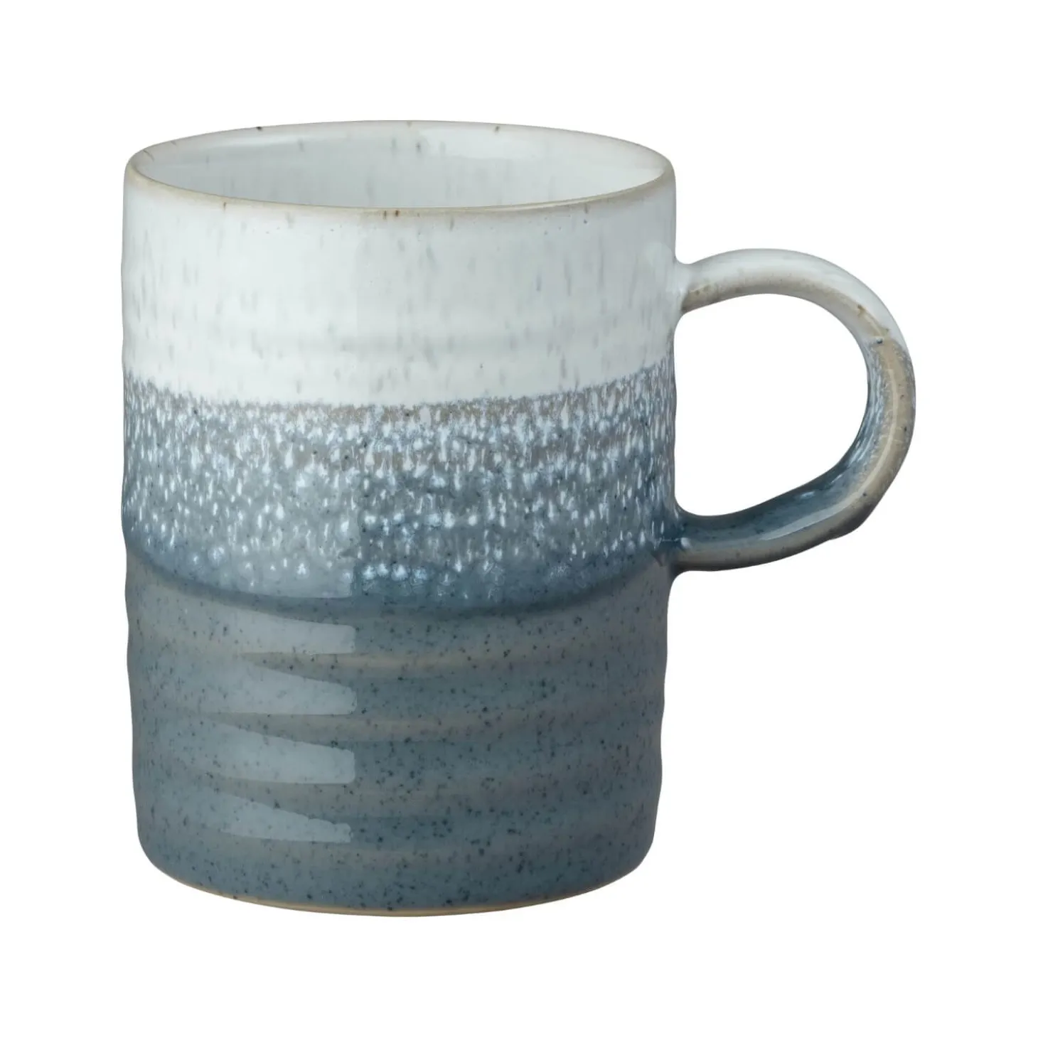 Denby presents their Ridged Mug in Slate. Made from strong and durable Derbyshire clay in Denbys own factory where they have been based for over 200 years, this beautiful mug has been lovingly made by over 20 pairs of hands by highly skilled artisans. The gorgeous tranquil colour with its gentle white and slate blue shades showcase the stunning reactive glaze effects used across this collection. Its design perfectly compliments other pieces in the Denby Kiln range enabling you to add to your pottery collection. The calm and soothing colours are perfect for your first cup of tea of the day, relaxing with a coffee on your break or even warming your soup for lunch.