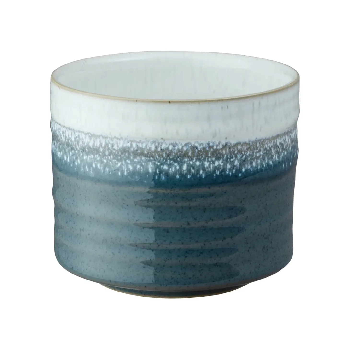 Denby presents their Medium Pot in Slate. Made from strong and durable Derbyshire clay in Denbys own factory where they have been based for over 200 years, this beautiful pot has been lovingly made by over 20 pairs of hands by highly skilled artisans. The gorgeous tranquil colour with its gentle white and slate shades showcase the stunning reactive glaze effects used across this collection. Its design perfectly compliments other pieces in the Denby Kiln range enabling you to add to your pottery collection. With its versatile size, this stunning pot can be used in a variety of ways, from plant pot to candle holder and would make a marvellous gift or a treat for yourself.Â