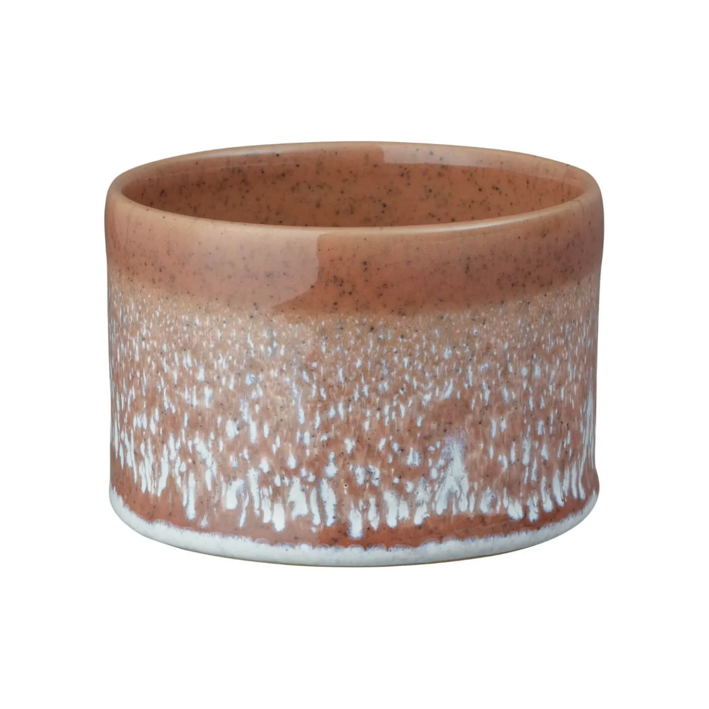 Denby presents their Small Round Pot in Rust. Made from strong and durable Derbyshire clay in Denbys own factory where they have been based for over 200 years, this beautiful pot has been lovingly made by over 20 pairs of hands by highly skilled artisans. The gorgeous tranquil colour with its gentle white and rust shades showcase the stunning reactive glaze effects used across this collection. Its design perfectly compliments other pieces in the Denby Kiln range enabling you to add to your pottery collection. With its versatile size, this stunning pot can be used in a variety of ways, from plant pot to candle holder and would make a marvellous gift or a treat for yourself.Â