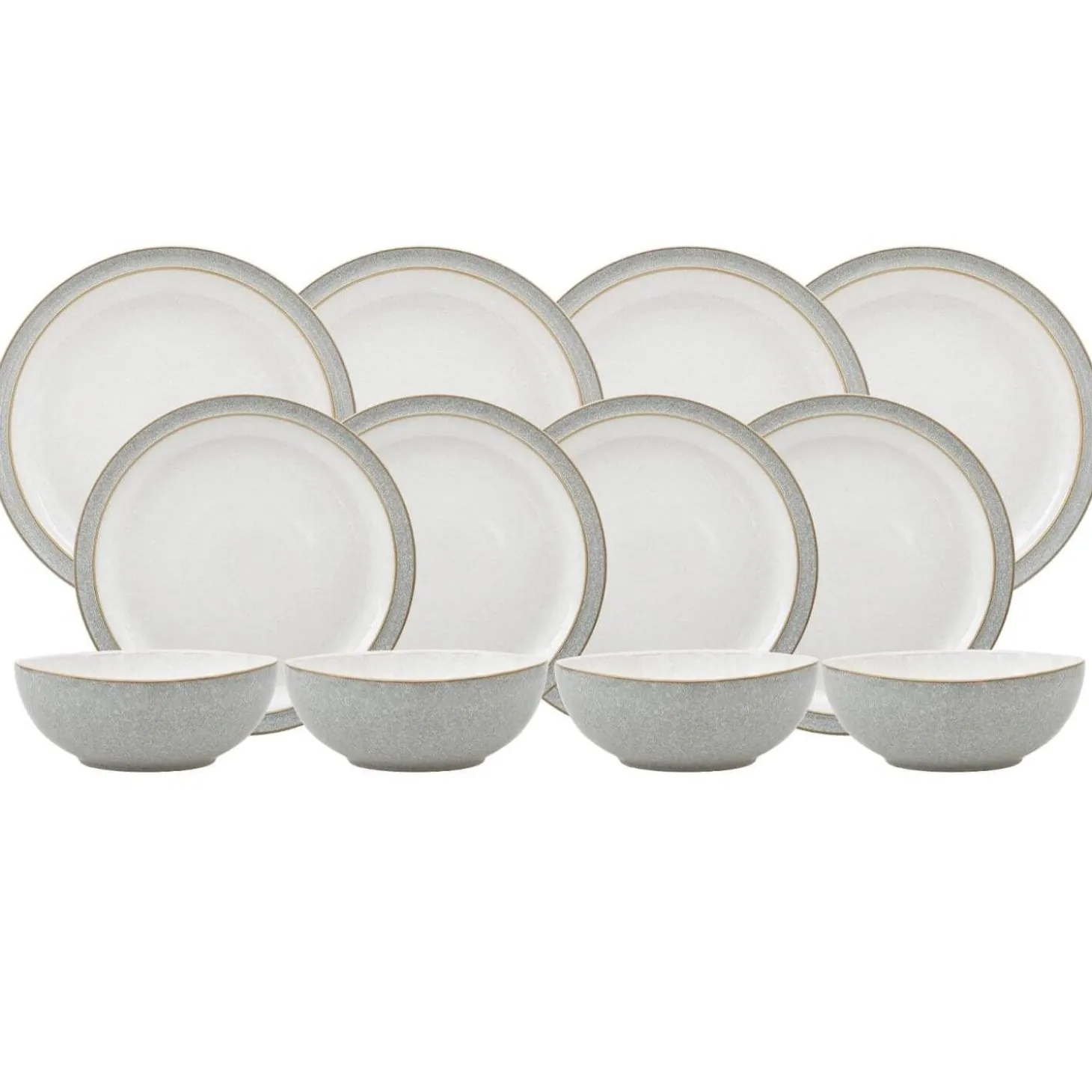 Each item in the twelve-piece dinnerware set from Denby has been crafted from high-quality stoneware and has a stunning light grey finish giving it a timeless style. This set comprises four dinner plates, four small plates and four cereal bowls perfect for everyday use and special occasions.