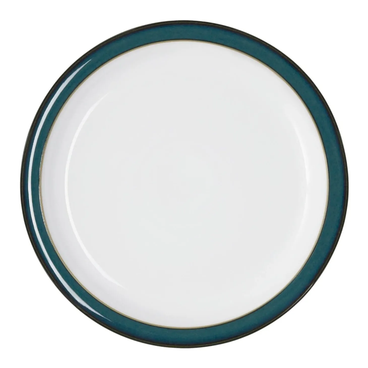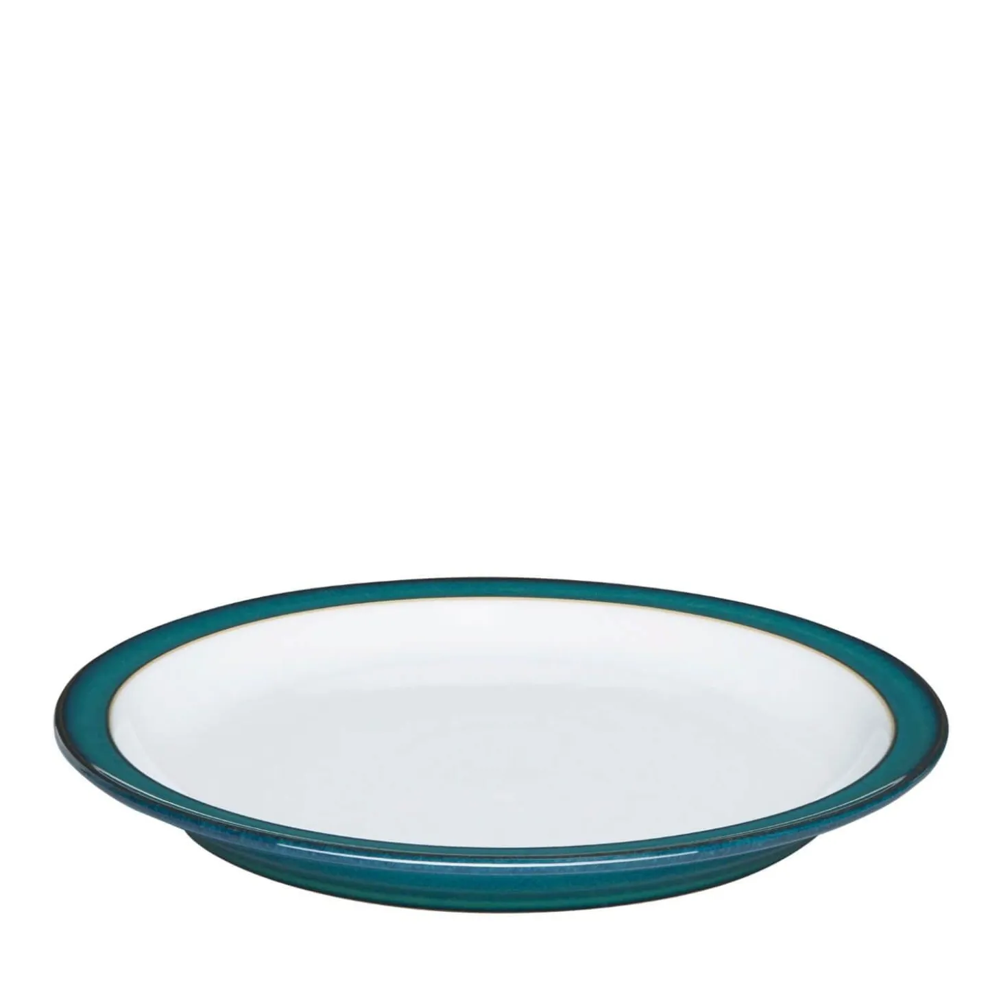 Denby presents this 26.5cm dinner plate in emerald green from the Greenwich range. Each item in this collection is beautifully handcrafted using high-quality locally-sourced clay with the aim to be eye-catching and practical. Featuring a crisp white interior, gold detailing and an eye-catching emerald-green exterior, a real sophisticated statement piece at the dining table. This plate can also be used to serve breakfast, lunch and dinner as well as snacks. Includes a 10-year guarantee.