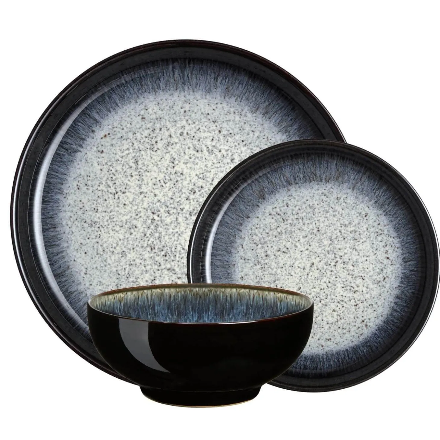 Denby presents their 12-Piece Coupe Dinnerware Set in their unique Halo Alt design. Made from strong and durable Derbyshire clay in Denbys own factory where they have been based for over 200 years. The Halo effect is produced by true artisans using challenging techniques and a special secret two-tone glaze which is expertly fused together creating a striking speckled effect. This eye-catching set is perfect for serving dinner to friends and family for an impressive table effect.