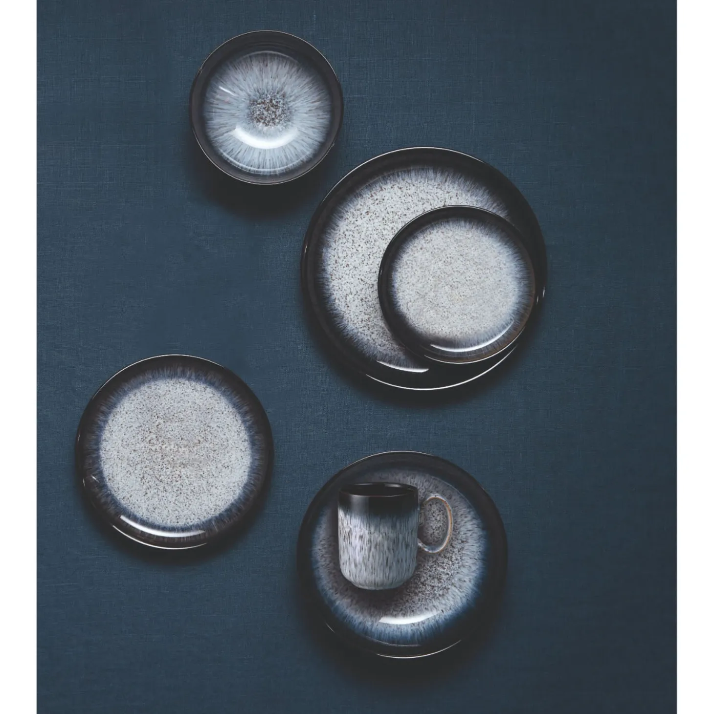 Timeless and truly unique, this small Denby Halo 28cm Dinner Plate is perfect for serving sweet and savoury dishes. Each item in the collection has been expertly crafted by hand using high-quality ceramics incorporating two tones of glaze that produces a visually beautiful speckled finish of light and dark matte grey shades with no two pieces ever being the same. Denby Halo is ideal for everyday use or special occasions. Produced at Denby Pottery in Derbyshire, England.