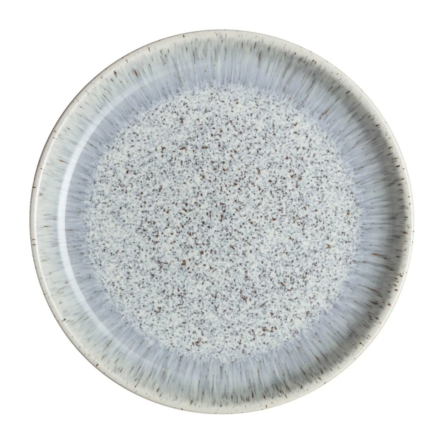 Denby presents this 26cm coupe dinner plate which forms part of the Halo Speckle range. Perfect for serving breakfast, lunch and dinner as well as snacks. Its unique design incorporates two tones of glaze to produce a striking, speckled finish. Each piece is made by Denby in Derbyshire from vitrified stoneware giving strength, durability and chip resistance. Includes a 10-year guarantee.