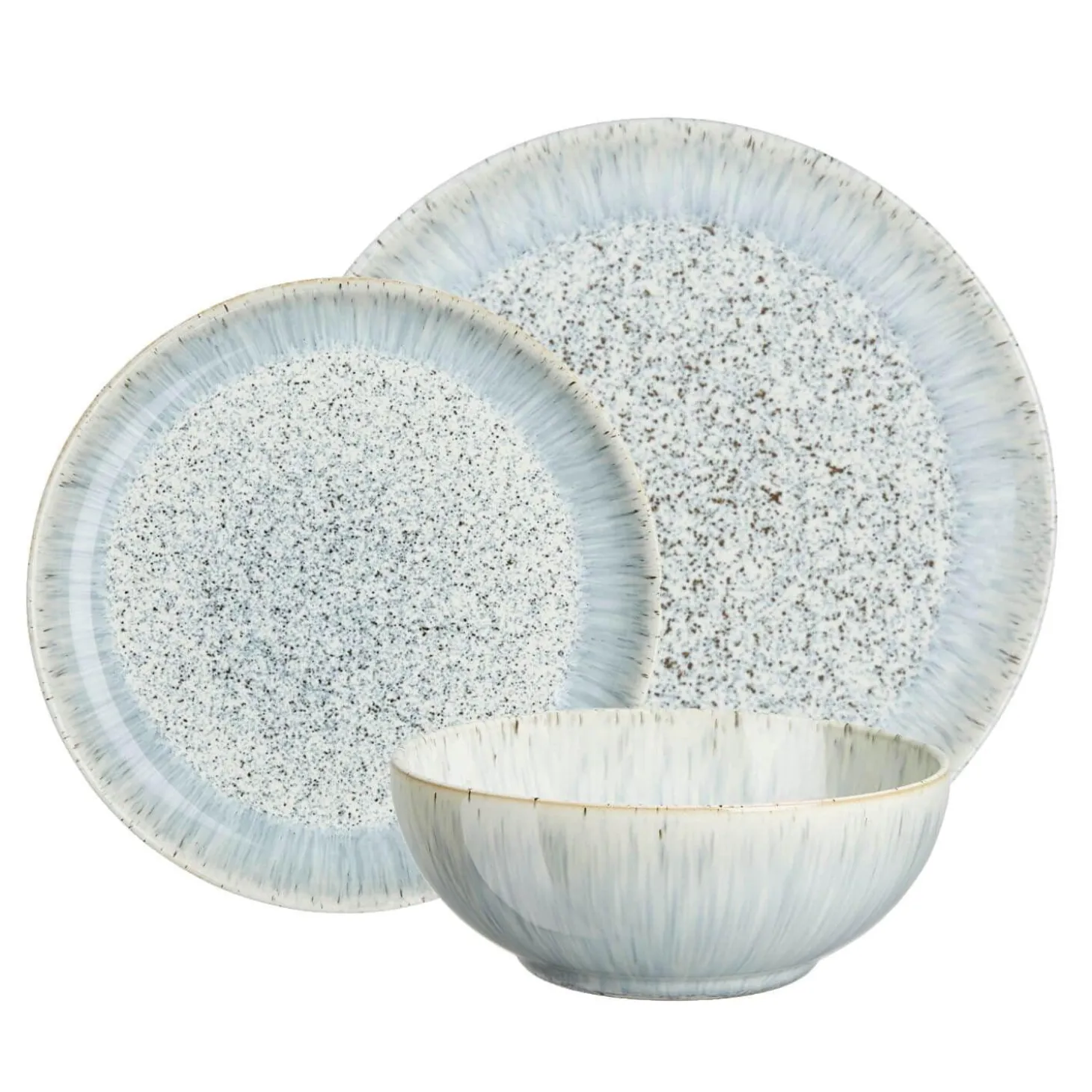 The Denby Halo Speckle 12 Piece Dinner Set is perfect for breakfast, lunch and dinner with its unique design which incorporates two tones of glaze to produce a striking, speckled finish. Comprising 12 pieces made by Denby in Derbyshire from vitrified stoneware giving strength, durability and chip resistance, this set is perfect for special and everyday occasions. Dishwasher, microwave, oven and freezer safe. 10 Year Denby Guarantee.
