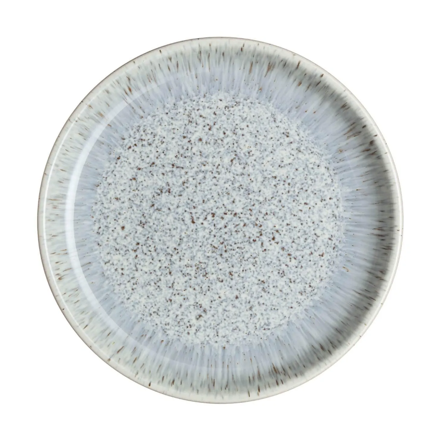 Denby presents this 21cm medium coupe plate which forms part of the Halo Speckle range. Perfect for serving breakfast, lunch and dinner as well as snacks. Its unique design incorporates two tones of glaze to produce a striking, speckled finish. Each piece is made by Denby in Derbyshire from vitrified stoneware giving strength, durability and chip resistance. Includes a 10-year guarantee.