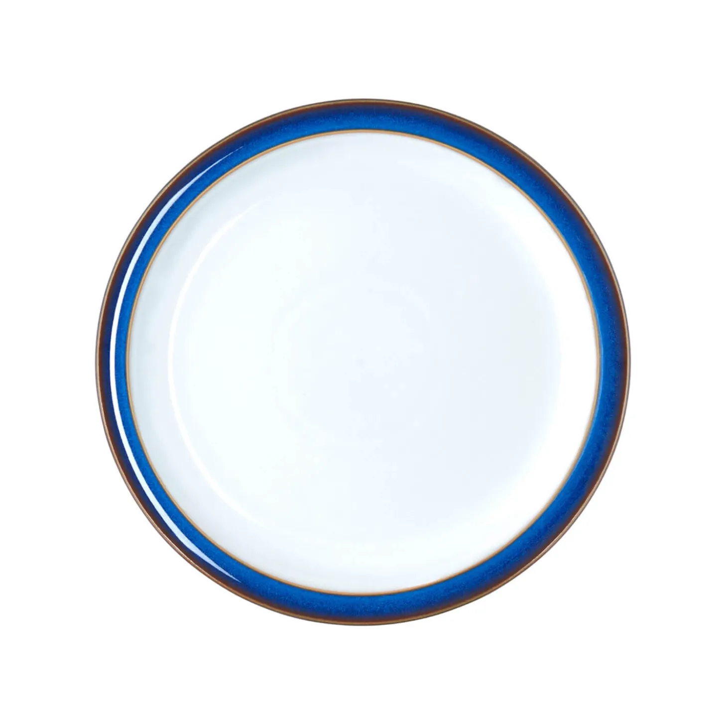 Denby presents the 17.5cm small plate from the Imperial Blue range. Each item in this collection is beautifully handcrafted using high-quality locally-sourced clay in Derbyshire with the aim to be simple and practical and consists of a striking cobalt blue exterior and contrasting pure white interior. This plate can also be used to serve breakfast, lunch and dinner as well as snacks.Â