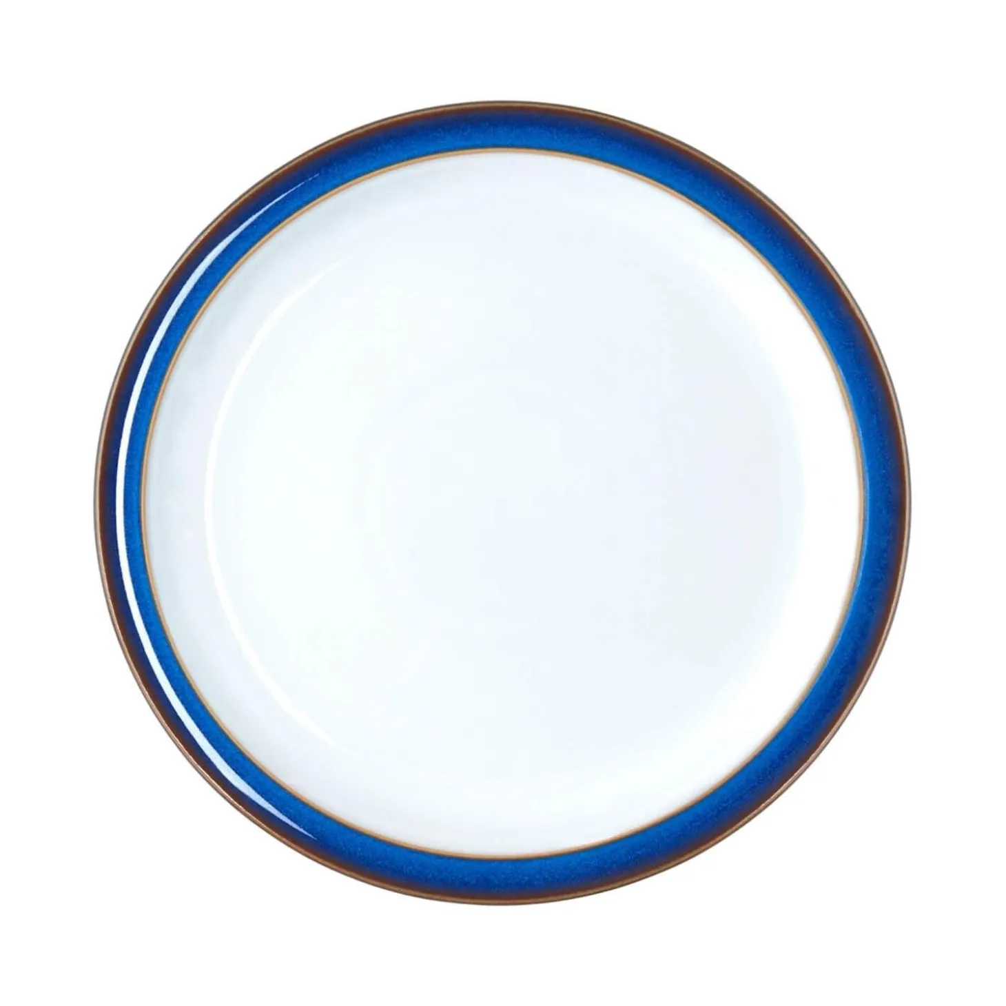 Denby presents this 22cm medium plate from the Imperial Blue range. Each item in this collection is beautifully handcrafted using high-quality locally-sourced clay with the aim to be simple and practical and consists of a striking cobalt blue exterior and contrasting pure white interior. This plate can also be used to serve breakfast, lunch and dinner as well as snacks. Includes a 10-year guarantee.