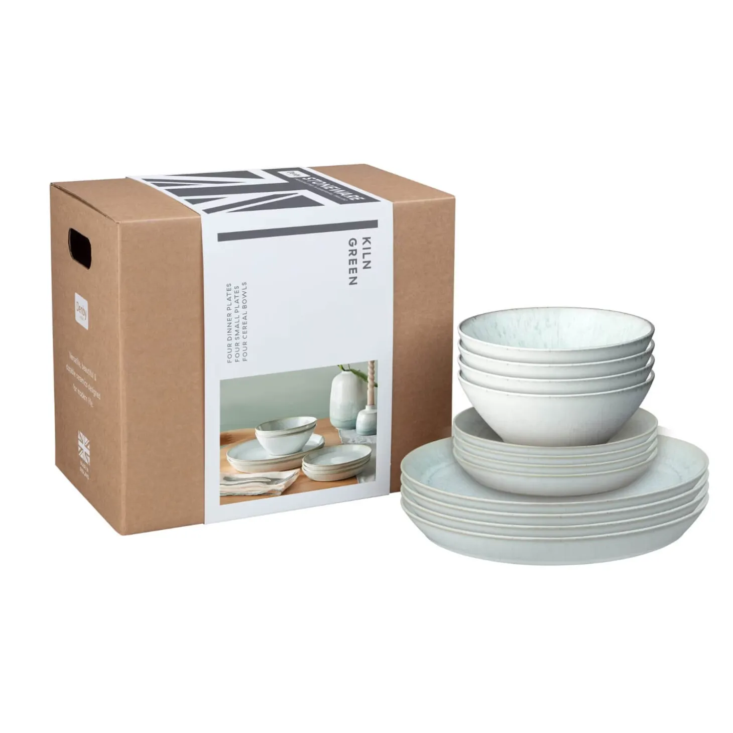 Denby presents their Dinnerware set in Green as part of their Kiln range. Made from strong and durable Derbyshire clay in Denbys own factory where they have been based for over 200 years, this beautiful tableware has been lovingly made by over 20 pairs of hands by highly skilled artisans. The gorgeous tranquil green colour with its gentle white and celedon shades showcase the stunning reactive glaze effects used across this collection. Its design perfectly compliments other pieces in the Denby Kiln range enabling you to add to your pottery collection. This eye-catching dinnerware set would make a marvellous gift or a treat for yourself when creating a calm and relaxed table for your dinner guests.