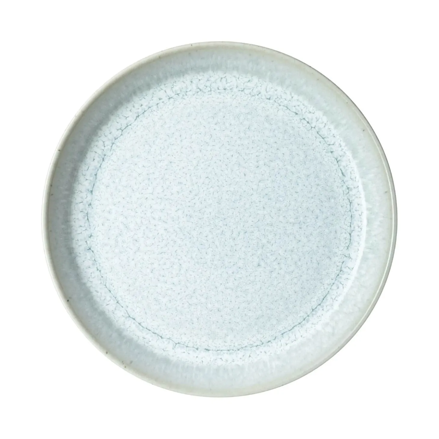 Denby presents their Small Plate in Green. Made from strong and durable Derbyshire clay in Denbys own factory where they have been based for over 200 years, this beautiful plate has been lovingly made by over 20 pairs of hands by highly skilled artisans. The gorgeous tranquil green colour with its gentle white and celedon shades showcase the stunning reactive glaze effects used across this collection. Its design perfectly compliments other pieces in the Denby Kiln range enabling you to add to your pottery collection. The calm and subtle colour of this plate has been designed to make your food look beautiful, whether you’re serving tea and biscuits or a light lunch.