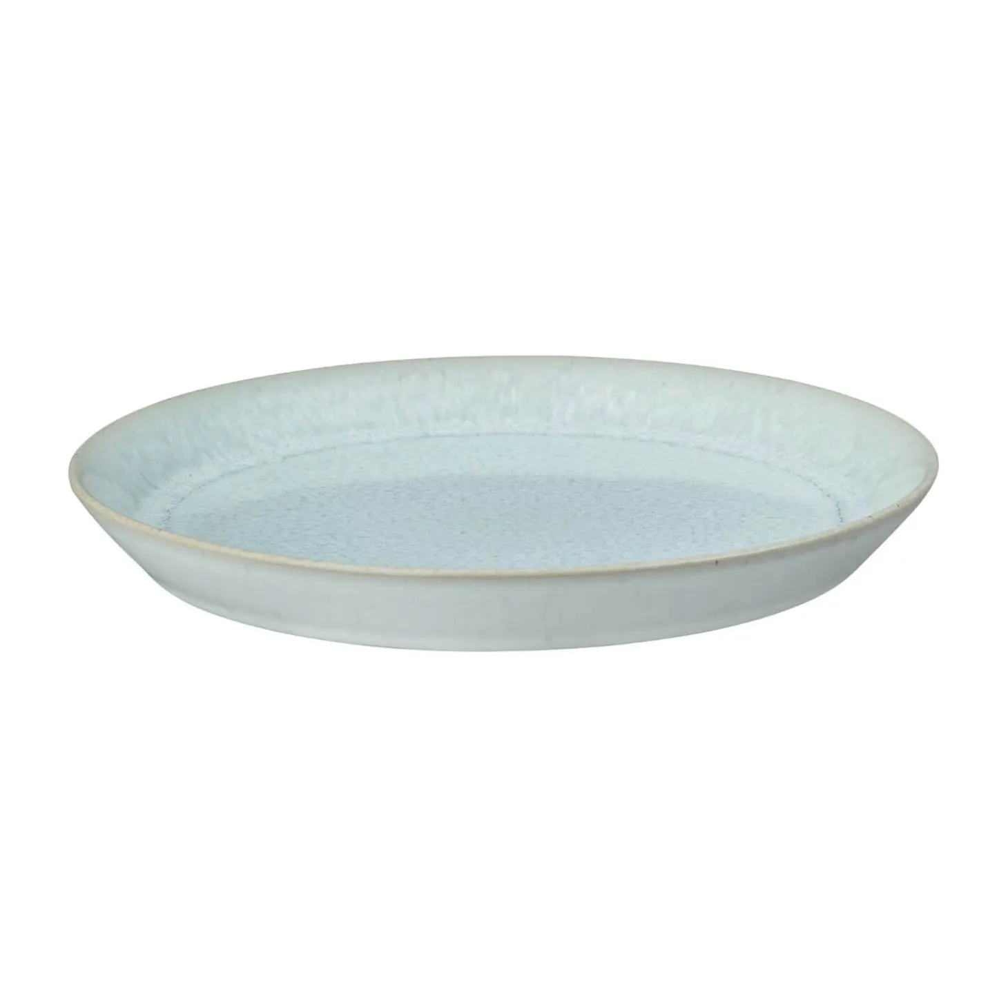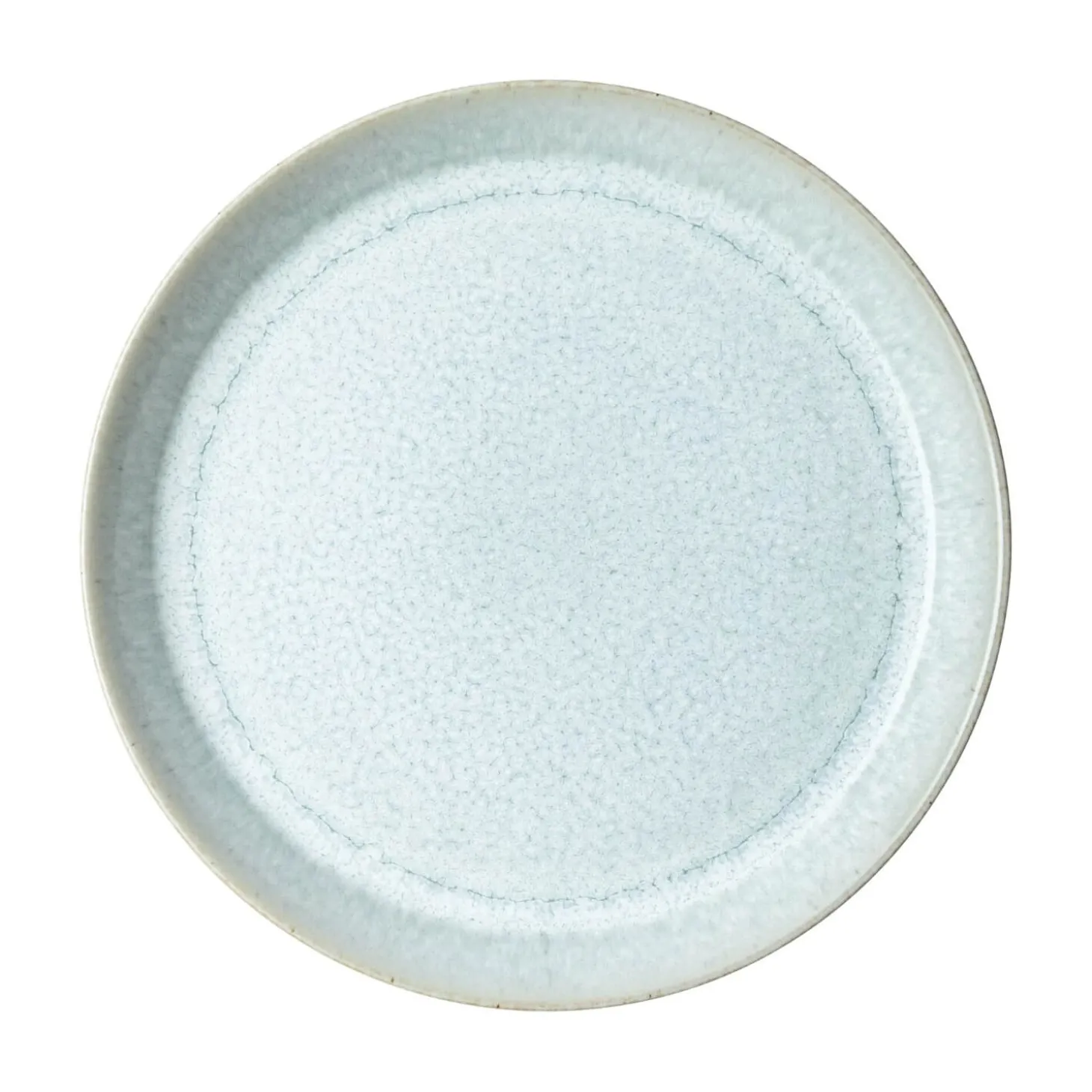 Denby presents their Medium Plate in Green. Made from strong and durable Derbyshire clay in Denbys own factory where they have been based for over 200 years, this beautiful plate has been lovingly made by over 20 pairs of hands by highly skilled artisans. The gorgeous tranquil green colour with its gentle white and celedon shades showcase the stunning reactive glaze effects used across this collection. Its design perfectly compliments other pieces in the Denby Kiln range enabling you to add to your pottery collection. The calm and subtle colour of this plate has been designed to make your food look beautiful, whether you’re serving a light lunch or a delicious dessert.