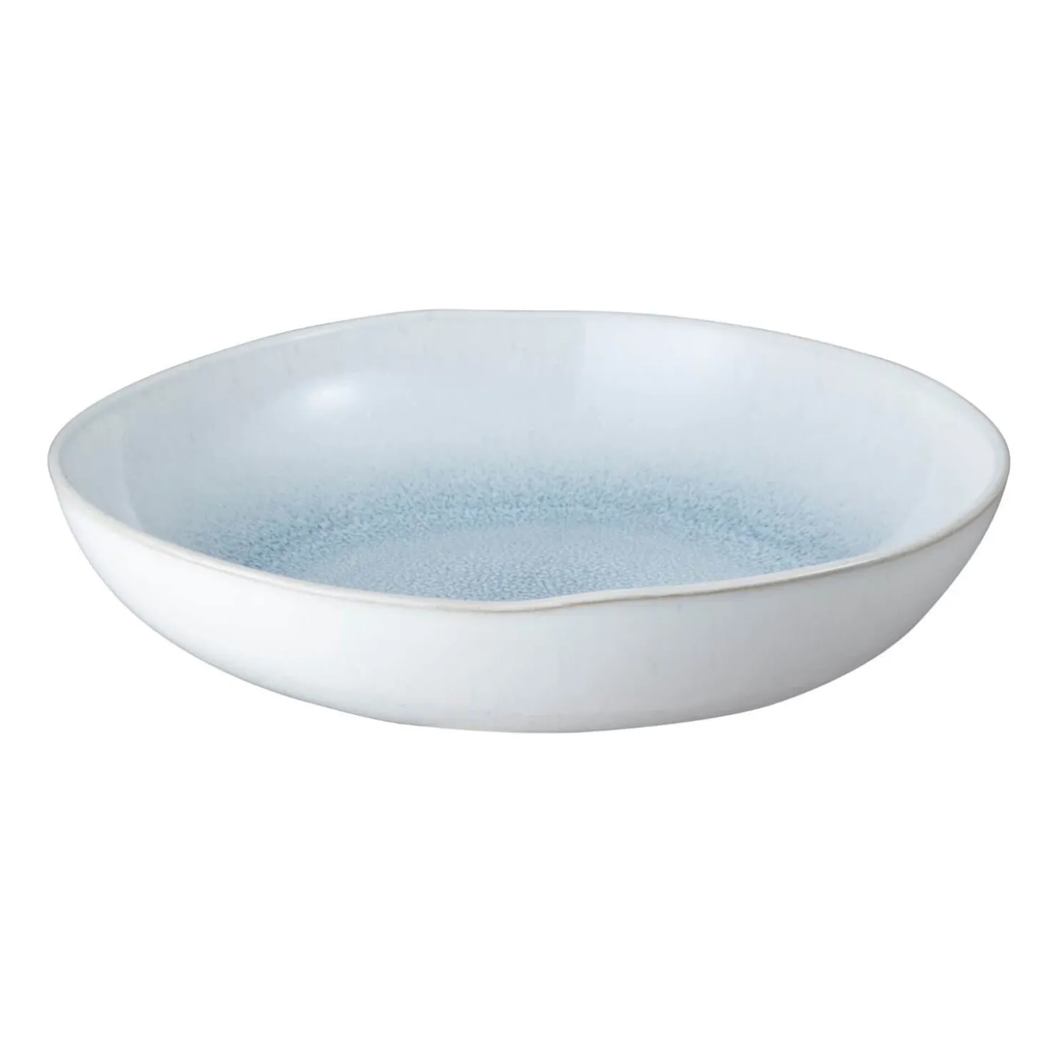 Denby presents their Large Organic Dish in Blue. Made from strong and durable Derbyshire clay in Denbys own factory where they have been based for over 200 years, this beautiful bowl has been lovingly made by over 20 pairs of hands by highly skilled artisans. The gorgeous tranquil blue colour with its gentle white and cerulean shades showcase the stunning reactive glaze effects used across this collection. Its organic shape has been naturally designed to mimic the wonders of nature and perfectly compliment other pieces in the Denby Kiln range enabling you to add to your pottery collection. This eye-catching bowl would make a marvellous gift or a treat for yourself. Its versatile size and shape make it ideal for serving a variety of dishes and with the added bonus of being oven-proof, your delicious creations can be served piping hot from the oven straight to the table!