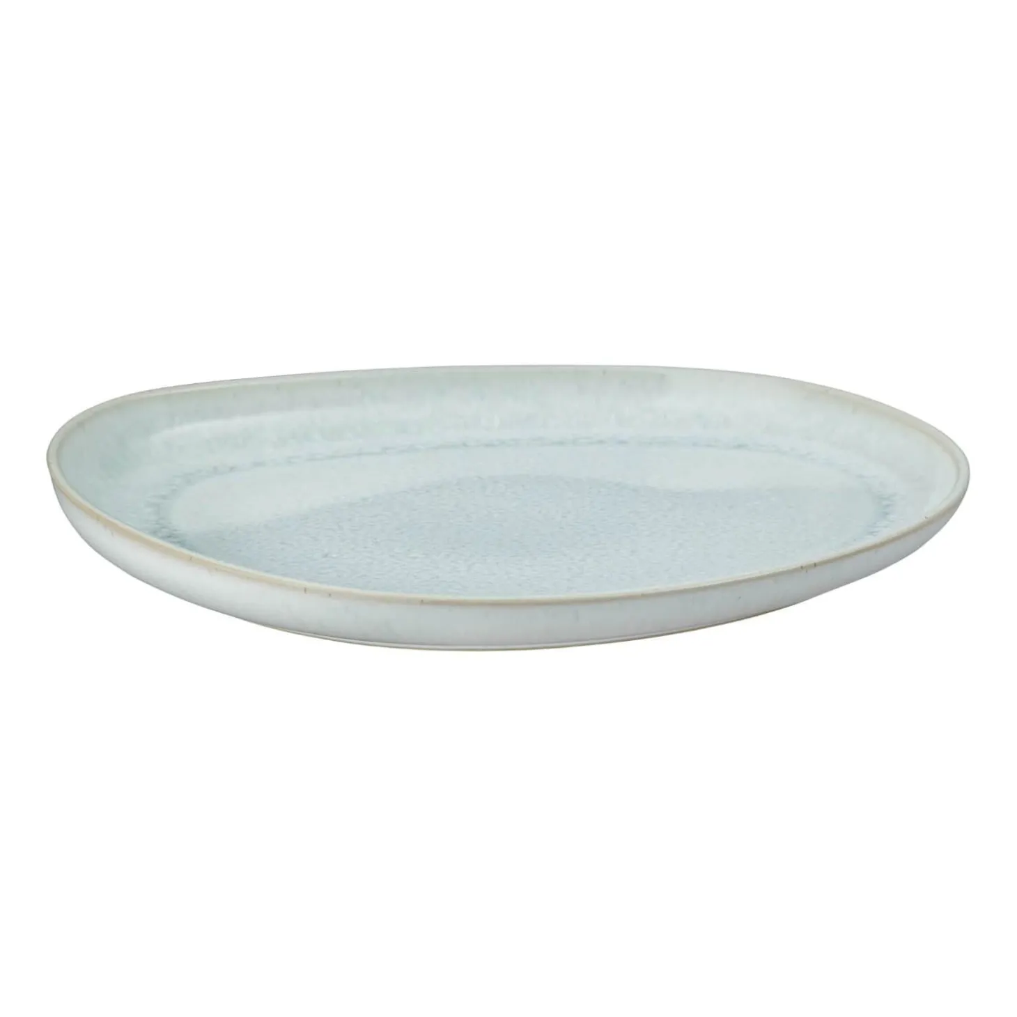 Denby presents their Large Organic Platter in Green. Made from strong and durable Derbyshire clay in Denbys own factory where they have been based for over 200 years, this beautiful dish has been lovingly made by over 20 pairs of hands by highly skilled artisans. The gorgeous tranquil green colour with its gentle white and celedon shades showcase the stunning reactive glaze effects used across this collection. Its organic shape has been naturally designed to mimic the wonders of nature and perfectly compliment other pieces in the Denby Kiln range enabling you to add to your pottery collection. The calm and subtle colour of this platter has been created to make your food look beautiful making it an eye-catching centrepiece for your table.