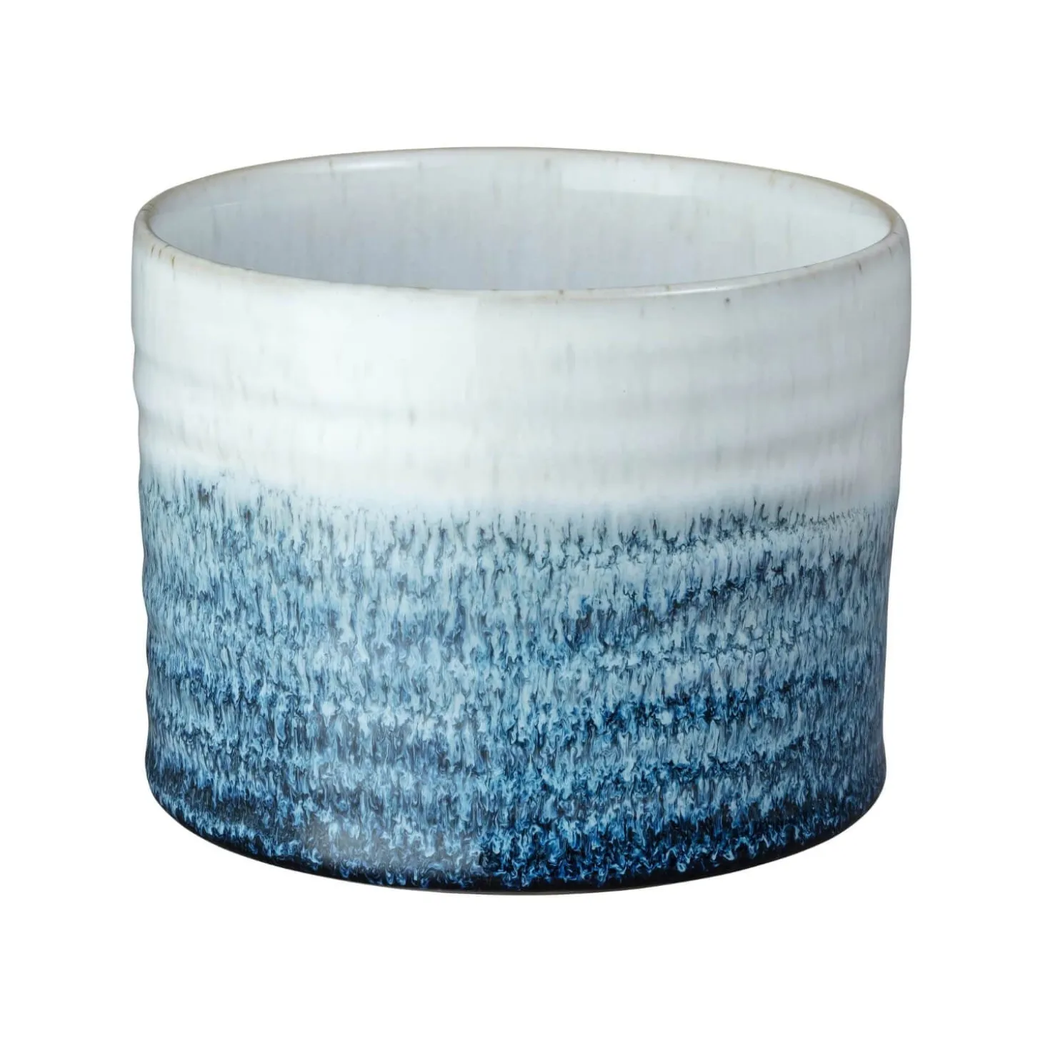 Denby presents their Medium Pot in Blue. Made from strong and durable Derbyshire clay in Denbys own factory where they have been based for over 200 years, this beautiful mug has been lovingly made by over 20 pairs of hands by highly skilled artisans. The gorgeous tranquil blue colour with its gentle white and cerulean shades showcase the stunning reactive glaze effects used across this collection. Its design perfectly compliments other pieces in the Denby Kiln range enabling you to add to your pottery collection. With its versatile size, this stunning pot can be used in a variety of ways, from plant pot to candle holder and would make a marvellous gift or a treat for yourself.Â