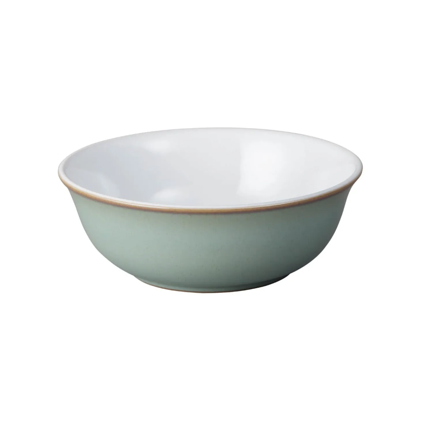 Denby presents this 16.5cm cereal bowl in natural green from the Regency Green. Each item in this collection is beautifully handcrafted using high-quality locally-sourced clay with the aim to be eye-catching and practical. Featuring a crisp white interior, gold detailing and a natural-green exterior. This bowl can also be used for a variety of dishes including porridge, soup, large desserts and puddings. Each piece is oven-safe, making this bowl ideal if you wanted to cook individual dishes. Includes a 10-year guarantee.