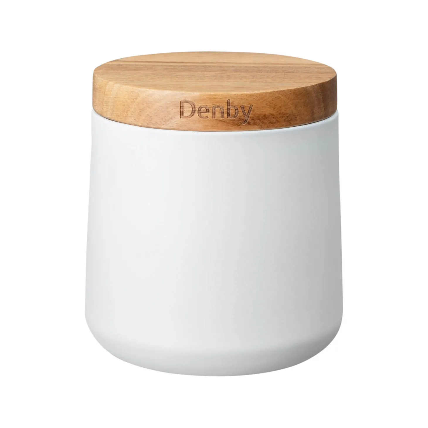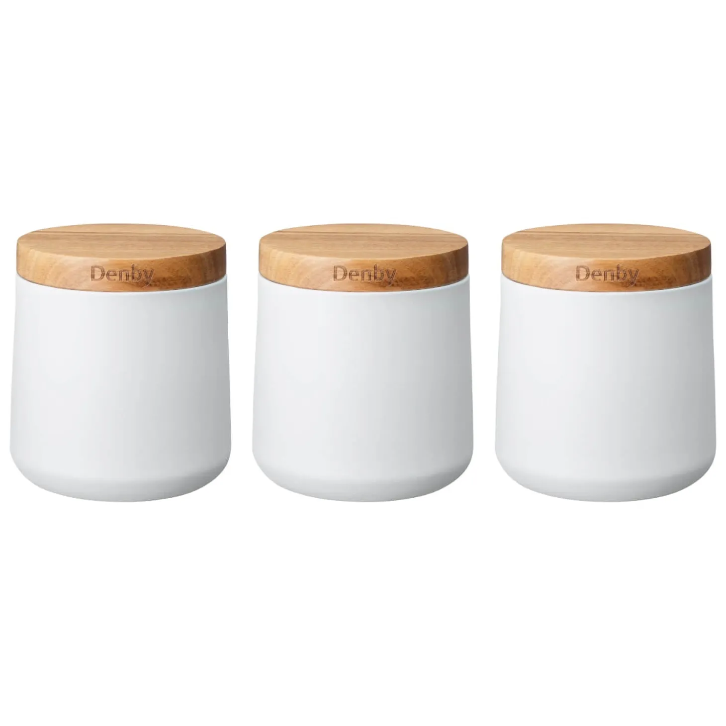 Denby presents this stylish set of 3 canisters with acacia wooden lids in white. Ideal for storing tea, coffee and sugar on the kitchen counter ready for when you pop the kettle on! Created from galvanised steel and featuring a matte white finish whilst the lids are made from premium acacia wood to create a perfect seal to keep contents fresher for longer. Each piece in this collection combines quality, durability and a beautiful aesthetic to suit any kitchen.