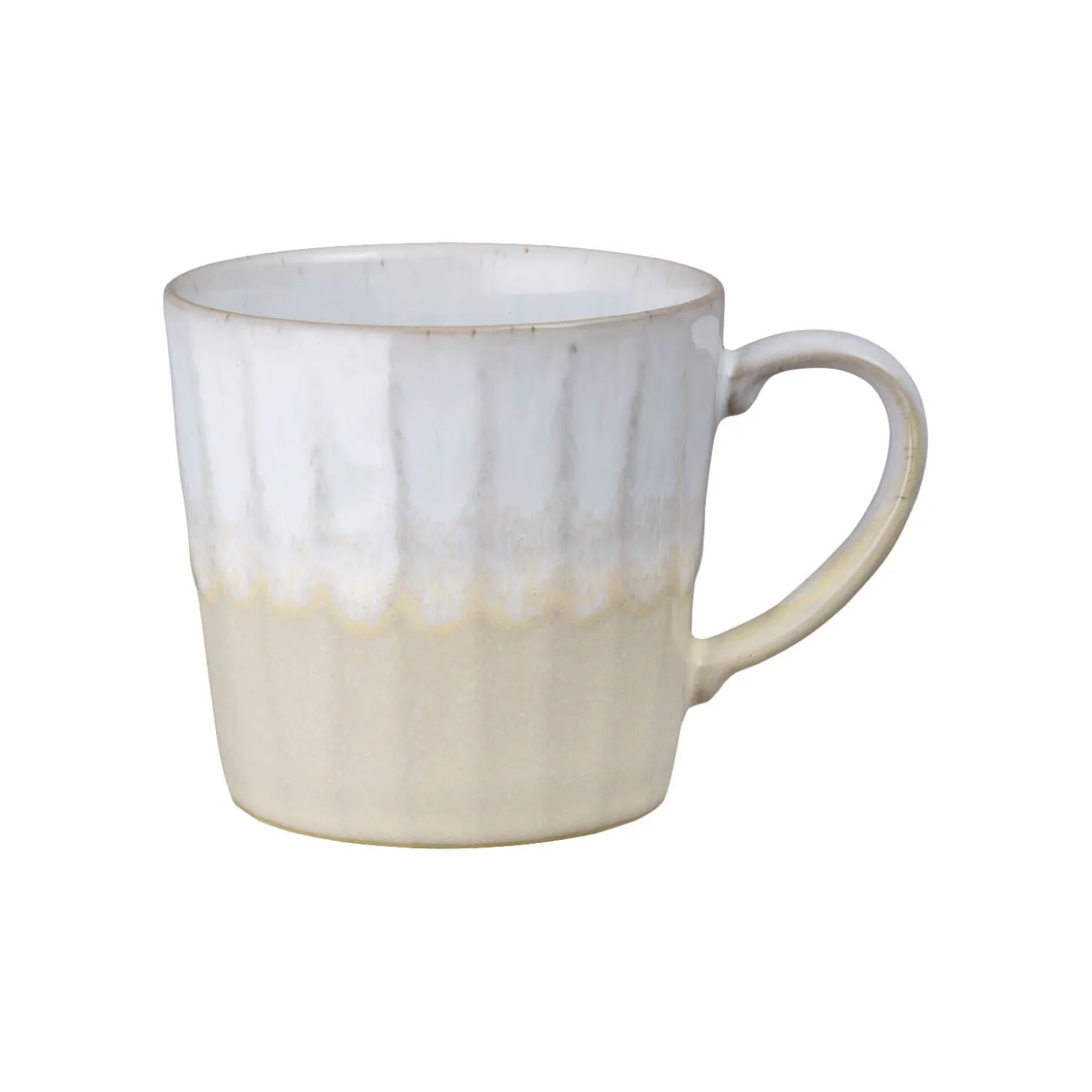 Denby presents the 400ml Mug in Natural from their Reactive range. Made from strong and durable Derbyshire clay in Denbys own factory where they have been based for over 200 years. The reactive shades are produced by true artisans using serene, flowing tones and a delicate dipping technique, layering multiple glazes to achieve a beautifully soft, reactive effect. The gentle design perfectly complements other pieces in the range, enabling you to add to your pottery collection, while the calming colour makes this mug ideal for enjoying your first cup of tea in the morning or unwinding with a coffee on your break.
