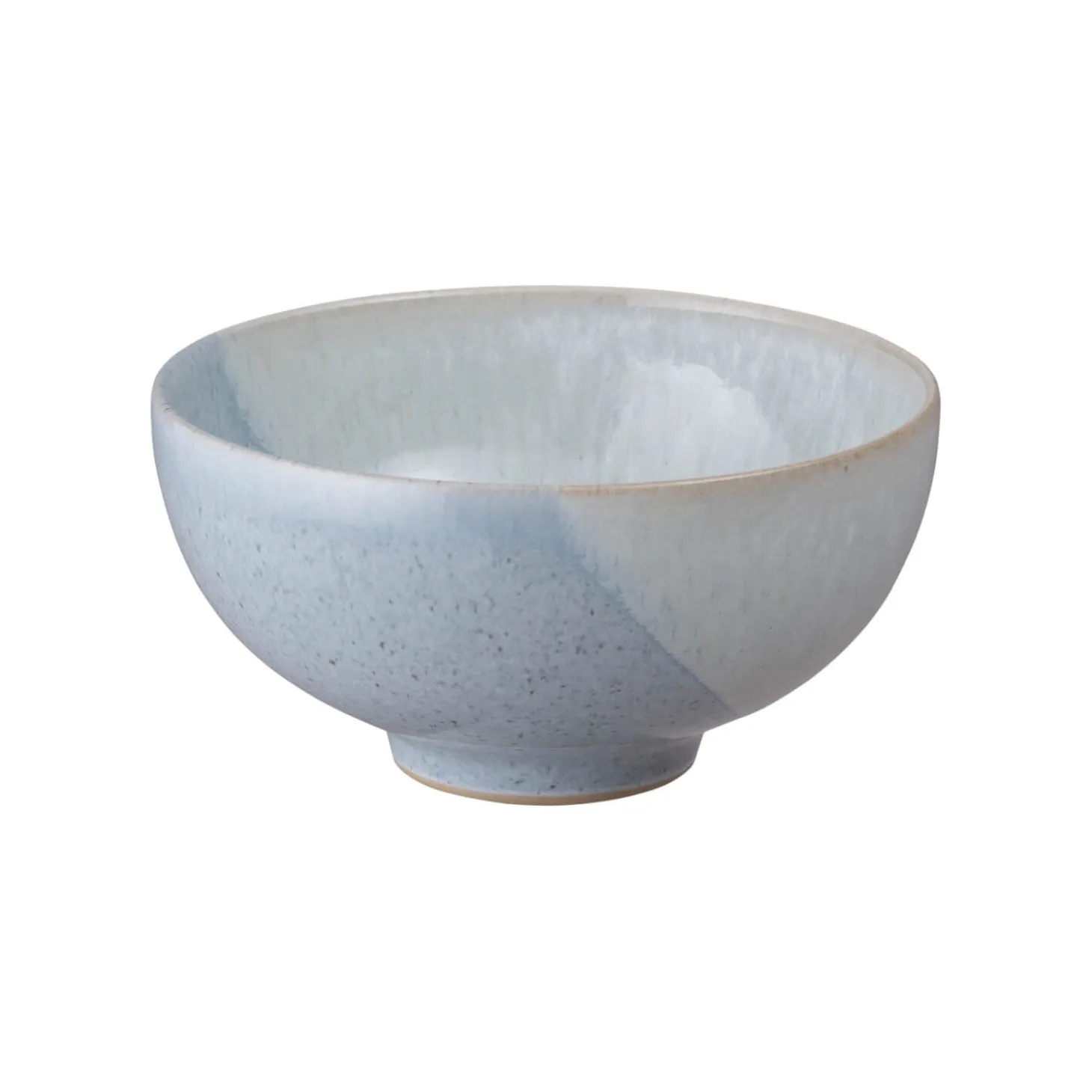 Denby presents their Kiln Accents Rice Bowl in Light Blue. Made from strong and durable Derbyshire clay in their own factory where they have been based for over 200 years, this beautiful bowl has been lovingly made by over 20 pairs of hands by highly skilled artisans. The serene, tranquil colours, featuring a soothing palette of soft white and pastel blue shades, beautifully highlight the stunning glaze effects throughout this collection. Its design perfectly compliments other pieces in the range, enabling you to add to your pottery collection. This elegant bowl is perfect for serving rice and side dishes to friends and family, creating a calm and welcoming table effect.