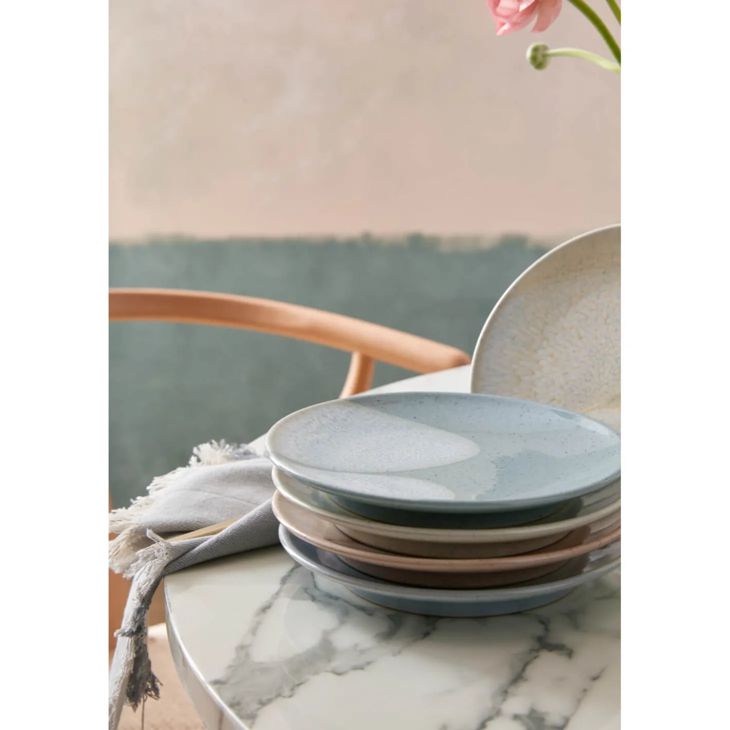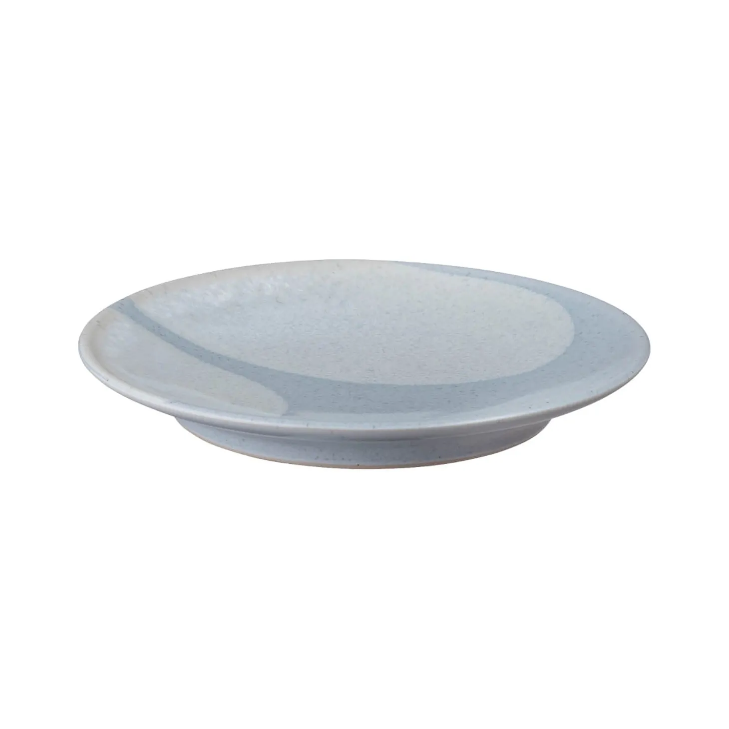 Denby presents their Kiln Accents Small Plate in Light Blue. Made from strong and durable Derbyshire clay in their own factory where they have been based for over 200 years, this beautiful plate has been lovingly made by over 20 pairs of hands by highly skilled artisans. The serene, tranquil colours, featuring a soothing palette of soft white and pastel blue shades, beautifully highlight the stunning glaze effects throughout this collection. Its design perfectly compliments other pieces in the range, enabling you to add to your pottery collection. This elegant plate is perfect for serving sides, desserts and salads to friends and family, creating a calm and welcoming table effect.