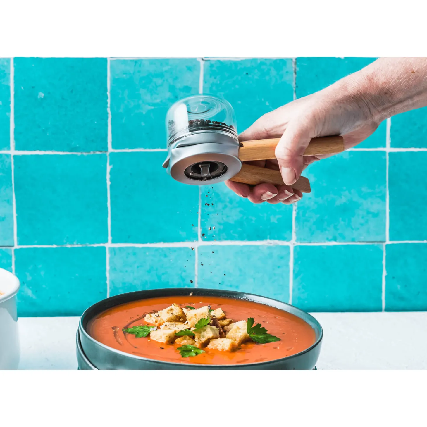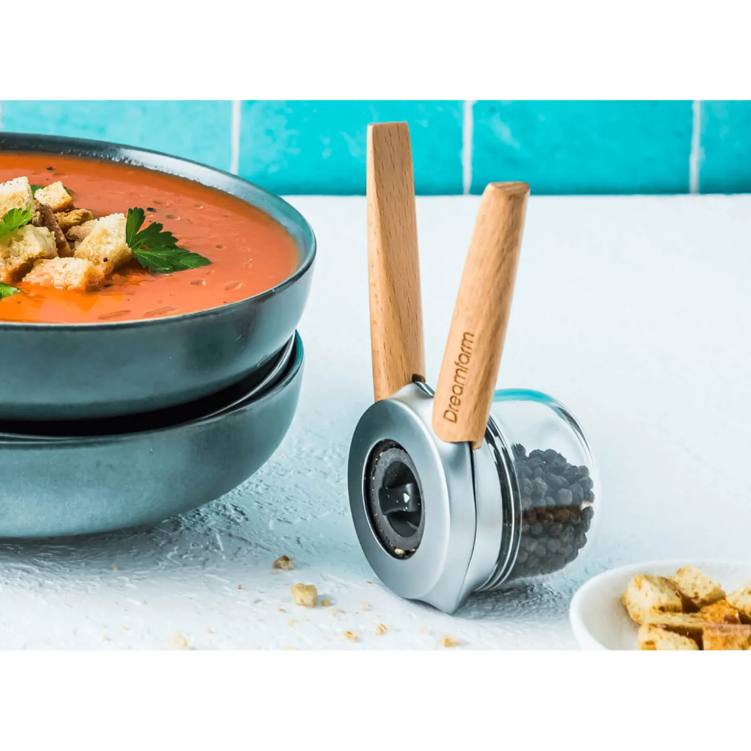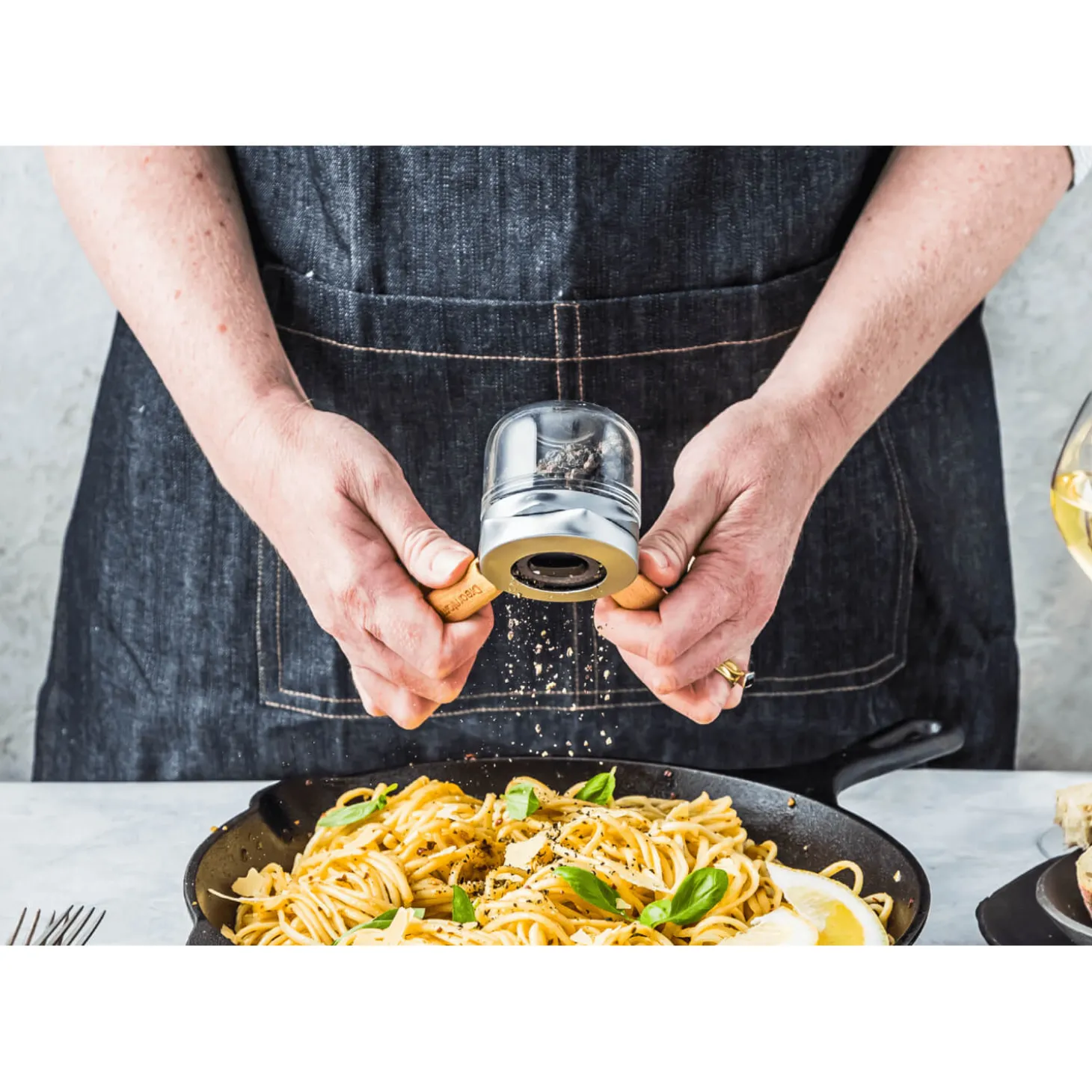 Design award winners Dreamfarm present the Ortwo Single or Double Handed Spice Mill. This great mill has an ultra-sharp ceramic grinding mechanism that is made from high-quality 95% alumina ceramic so it won’t rust or blunt, it can be easily operated using either one or two hands. There are six fully adjustable grind settings allowing you to choose from fine to coarse for all your different types of seeds and spices. A great mill for all cooks kitchens.Â