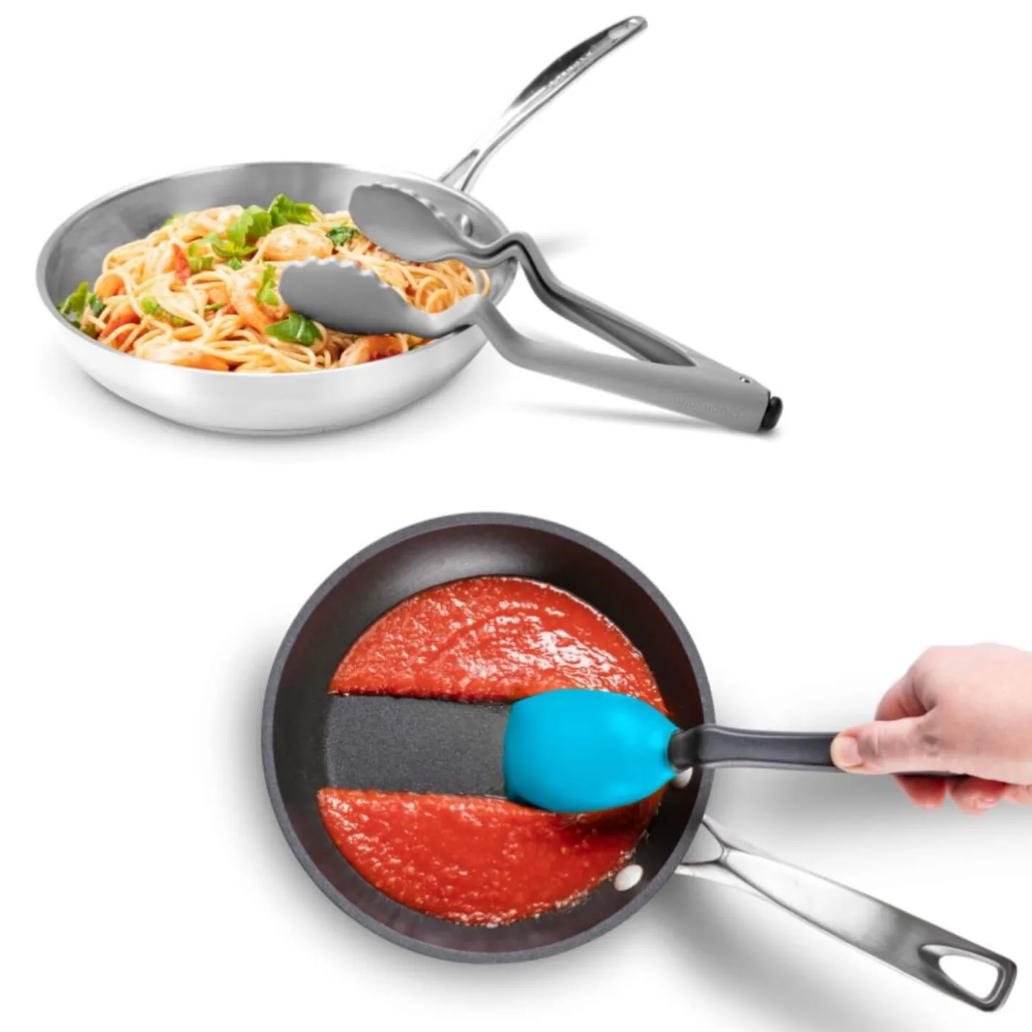 - Multi-coloured utensils suitable for non-stick pots and pans