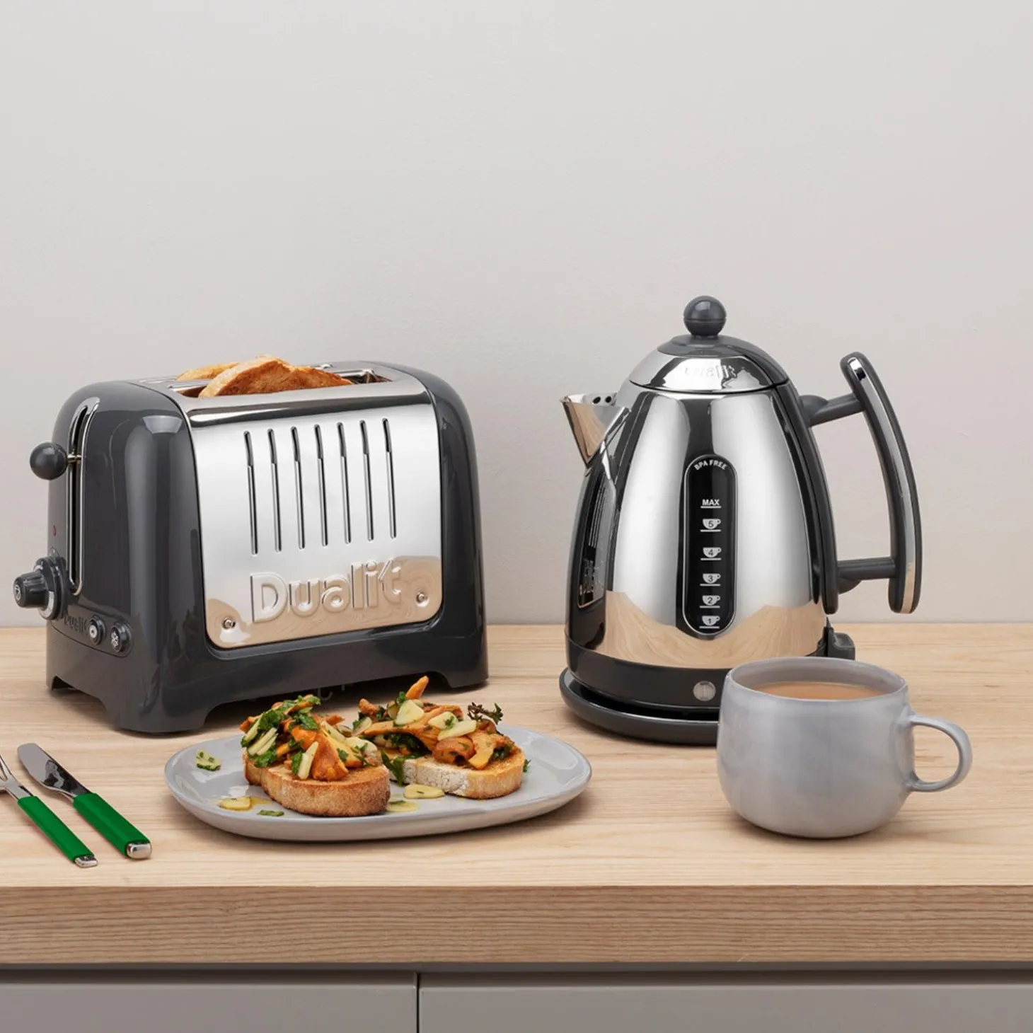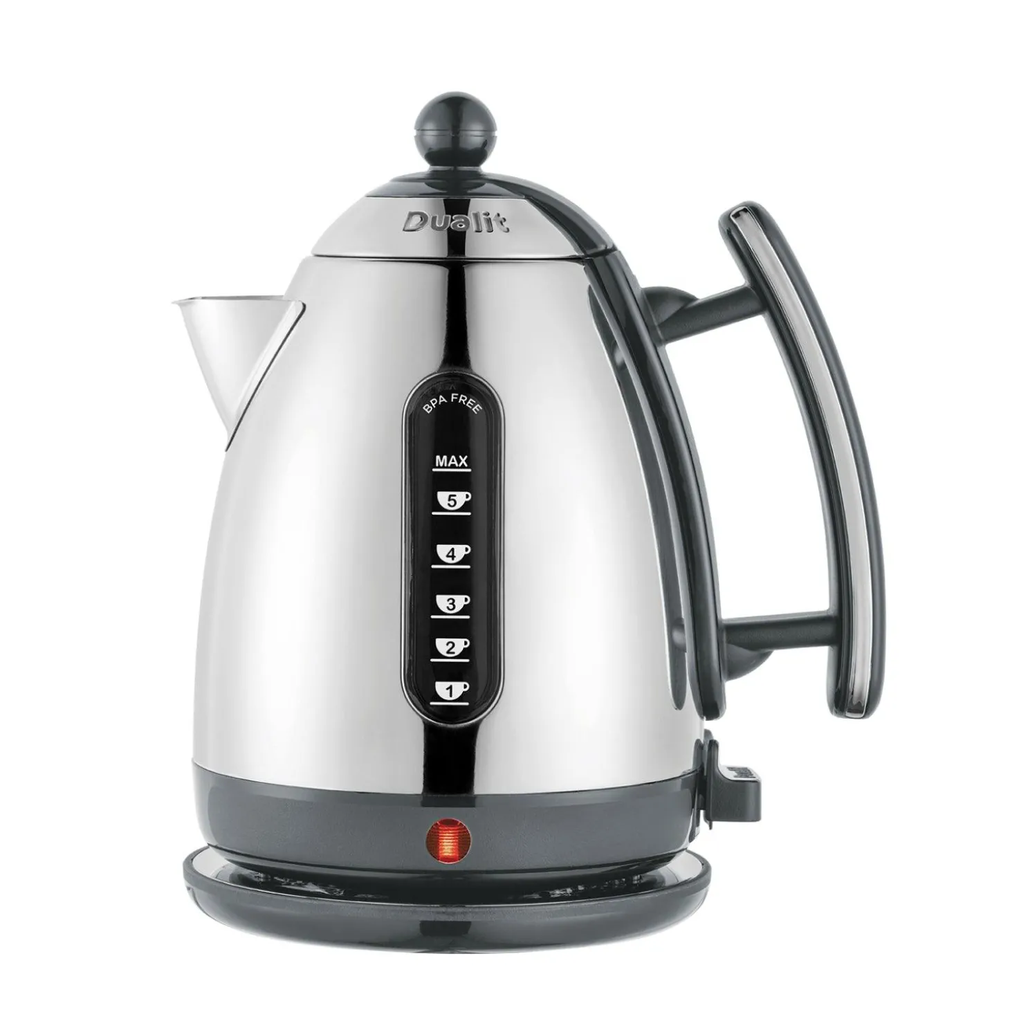 Dualit presents the Lite Jug Kettle in Polished Grey. Featuring a stylish and versatile design with a large 1.5 litre capacity with a handy cup level and litre indicator to help ensure you only need to boil the water needed. The powerful heating element allows for rapid boiling, while the oversized spout prevents spilling whilst pouring. A complementing Lite toaster is also available.