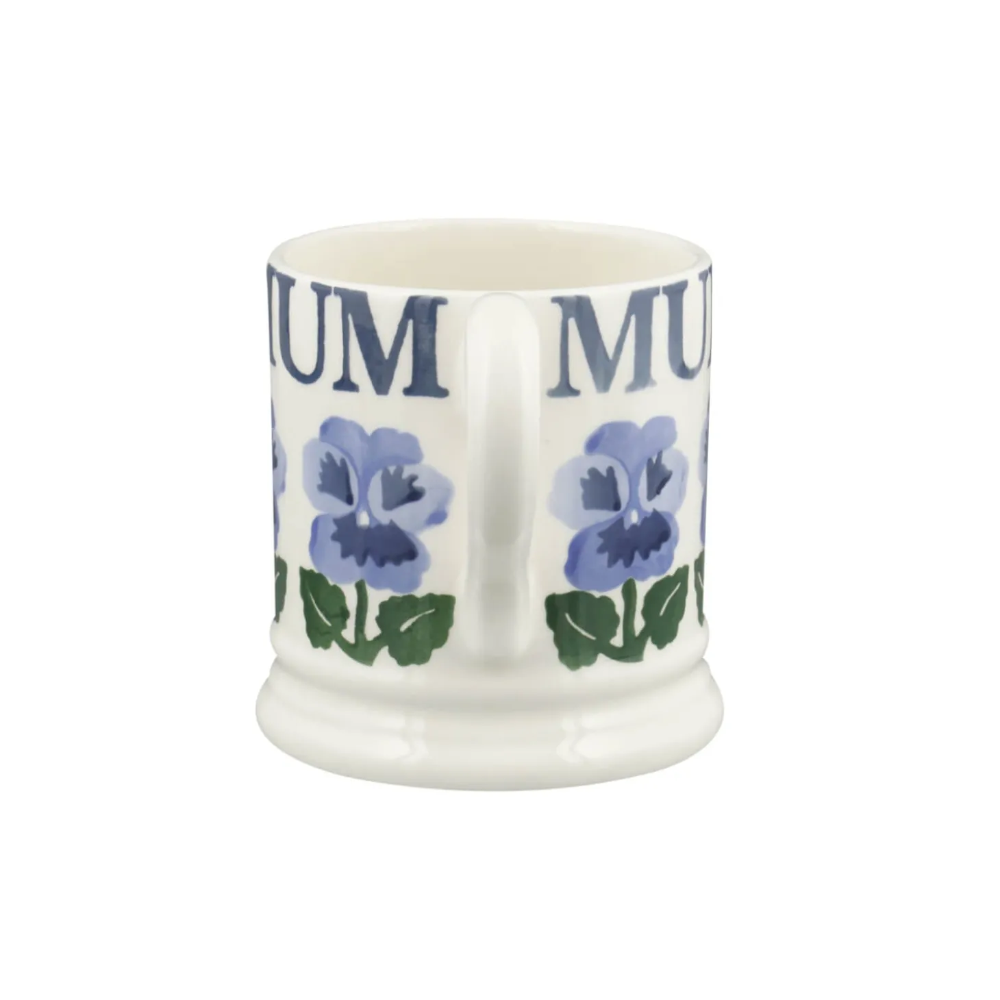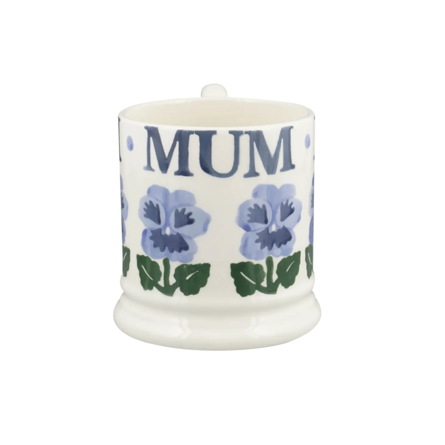 Emma Bridgewater presents the ‘Blue Pansies – Mum’ Half Pint Mug, beautifully adorned with an enchanting wraparound pansy design with the wording ‘Mum’ around the rim. This charming mug makes an excellent gift for Mothers Day, birthdays and Christmas.