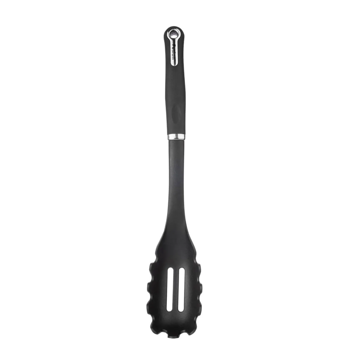 Fusion presents this nylon spaghetti spoon which is the perfect tool for dishing up pasta & spaghetti for your favourite dishes. The spaghetti spoon has smart draining holes so access water can be drained easily when serving food and an ergonomic soft-grip handle makes for a comfortable but firm grip that stops accidents whilst handling hot food.