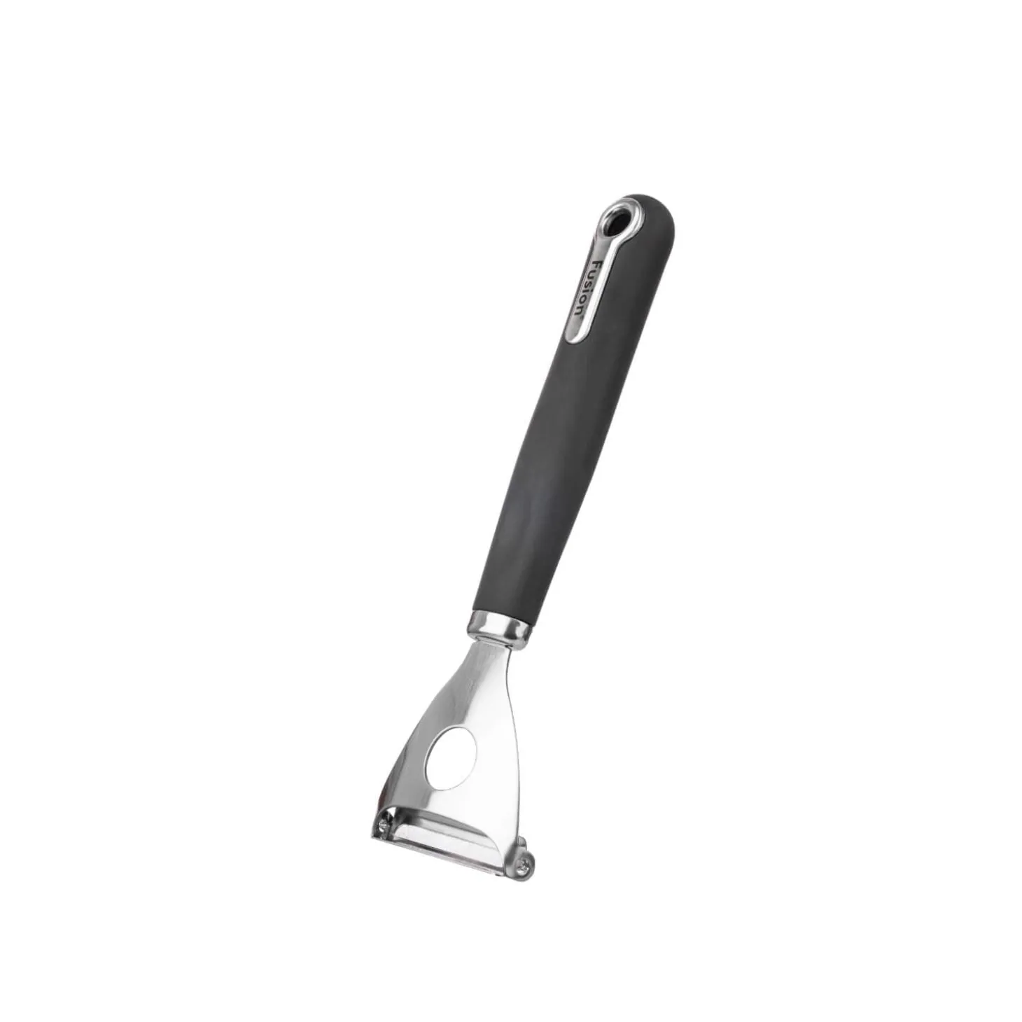 Fusion presents the stainless steel Y shaped peeler, an essential kitchen staple! Featuring different blades, one side features a straight edge and the other a serrated edge for slicing vegetables like carrot, potatoes and swede. With a soft-touch handle that ensures a firm but comfortable grip whilst in use.