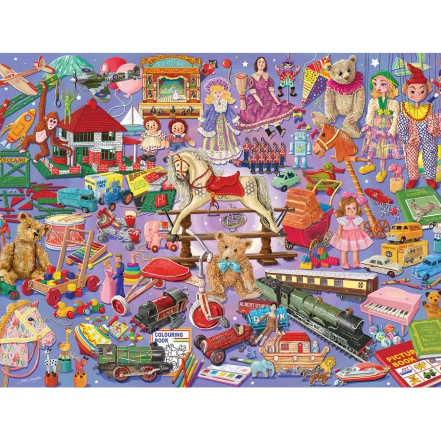 Gibsons presents the ‘Playtime Favourites’ 1000-piece jigsaw puzzle, revisiting the magic of classic toys and timeless games in a beautiful illustration painted by the talented artist Janice Daughters. All Gibsons jigsaws are created using sustainably sourced paper and a 100% recycled puzzle board, the pieces are thick and strong and designed to fit together perfectly. This puzzle would make a wonderful gift or a treat for yourself.
