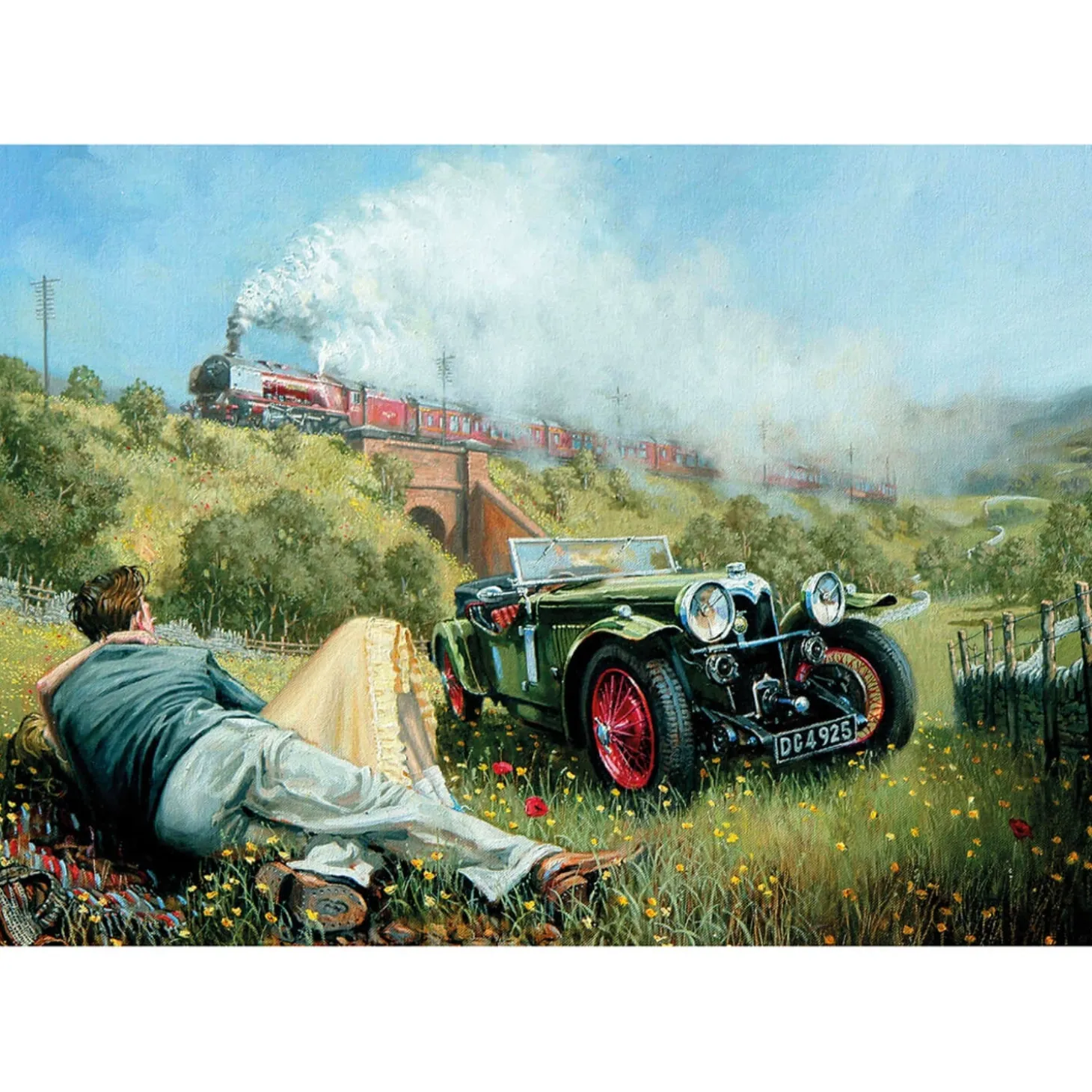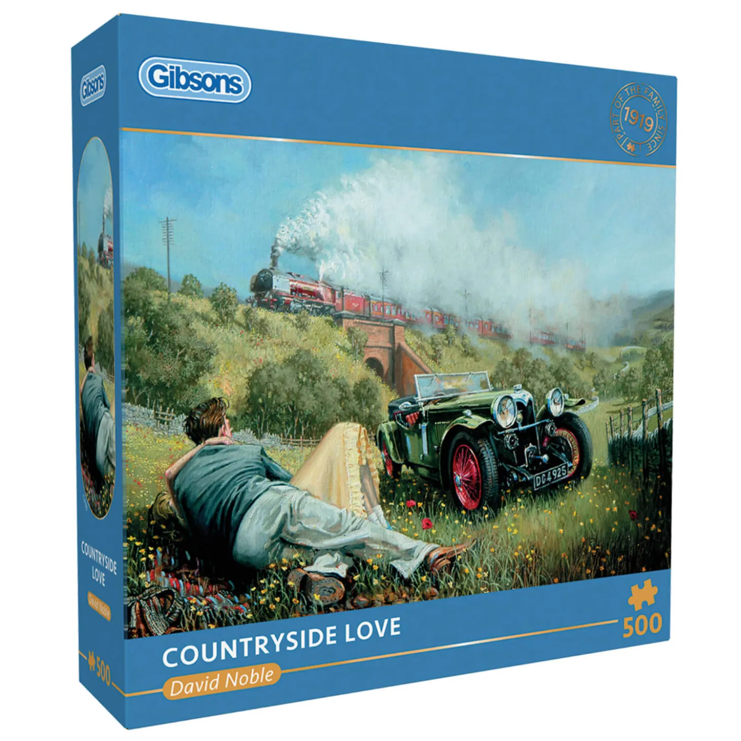 Gibsons presents the ‘Countryside Love’ 500-piece jigsaw puzzle, capturing a peaceful countryside scene, featuring a vintage car parked in a meadow as a couple in love relaxes amongst the flowers watching a steam train chug by. All Gibsons jigsaws are created using sustainably sourced paper and a 100% recycled puzzle board, the pieces are thick and strong and designed to fit together perfectly. This puzzle would make a wonderful gift or a treat for yourself.